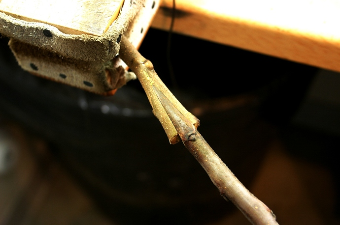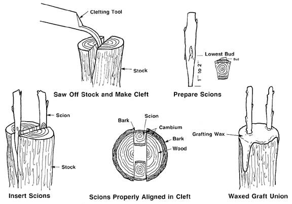 Note in this image how the scions are cut in a slight wedge shape when viewed from the top in cross section. Otherwise you may have gaps at the cambium.