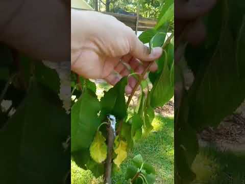 The third video is the Royal Crimson I want to take the scion from. Unfortunately I only have three new growth short branches. They will obviously be a smaller caliper so if I want to graft near the trunk of the recipient tree there will be a small mismatch on caliper.