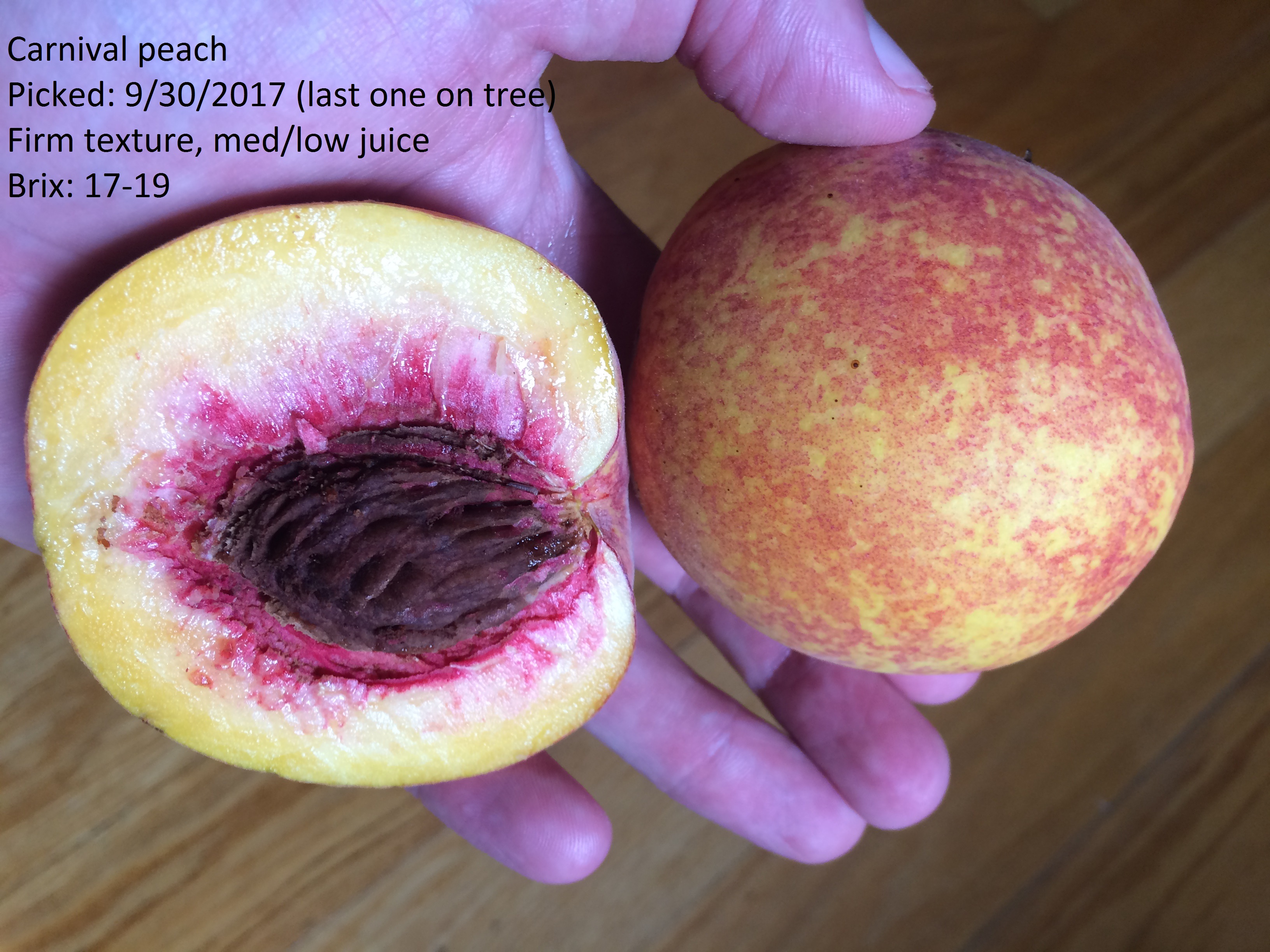 So, while I am thrilled with Carnival, it looks like I need to find a later one to really stretch the season. It didn’t make it all the way until October. There is only 1 Heath Cling left on the tree as well, though some of the early drops were insect related. 7 of the next 10 days are forecast in the 70’s, so there is still plenty of season left for fruit to ripen (at least in some years).