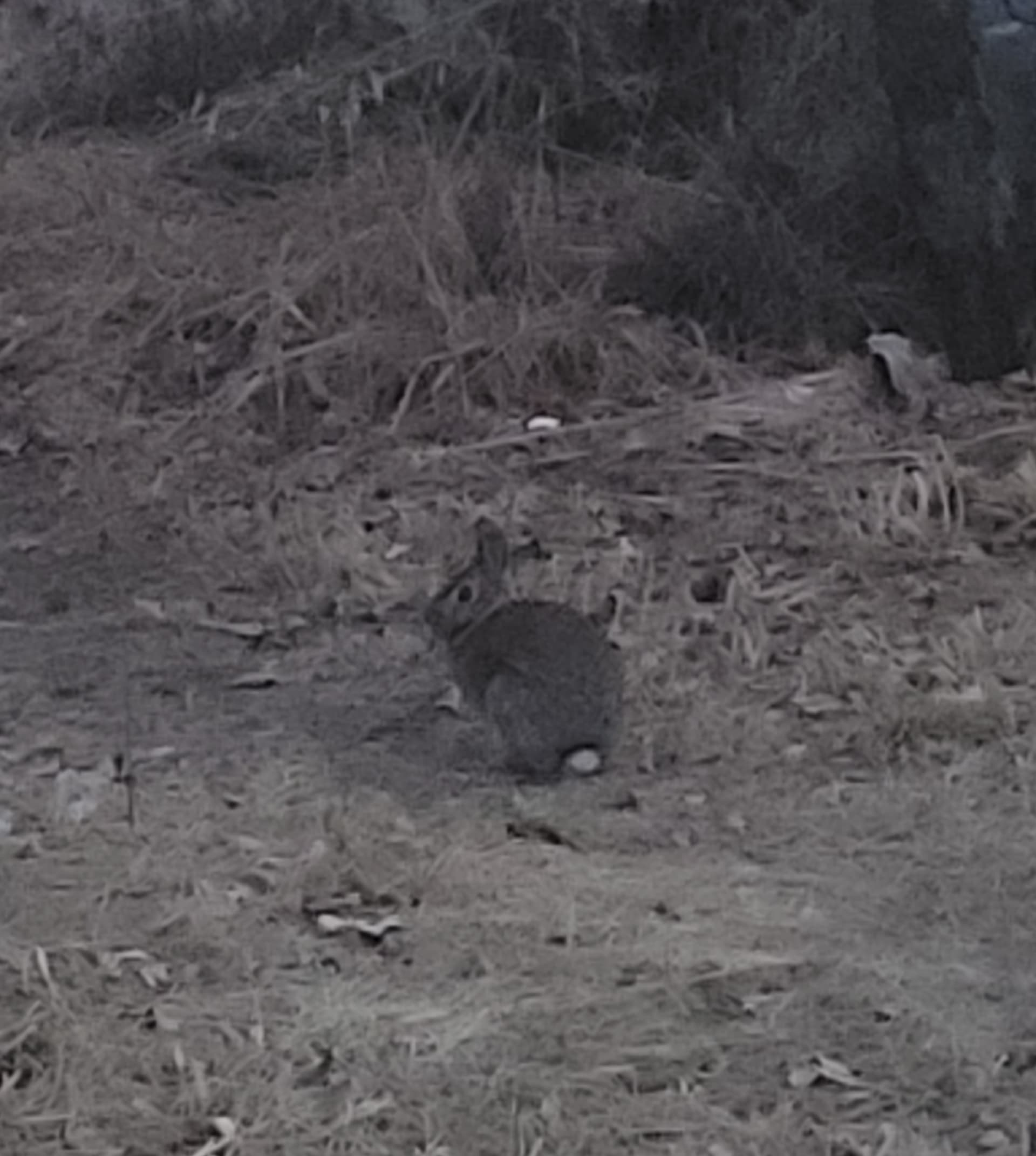 It was low light in this photo because this rabbit is mostly nocturnal to avoid my dogs as much as possible. .