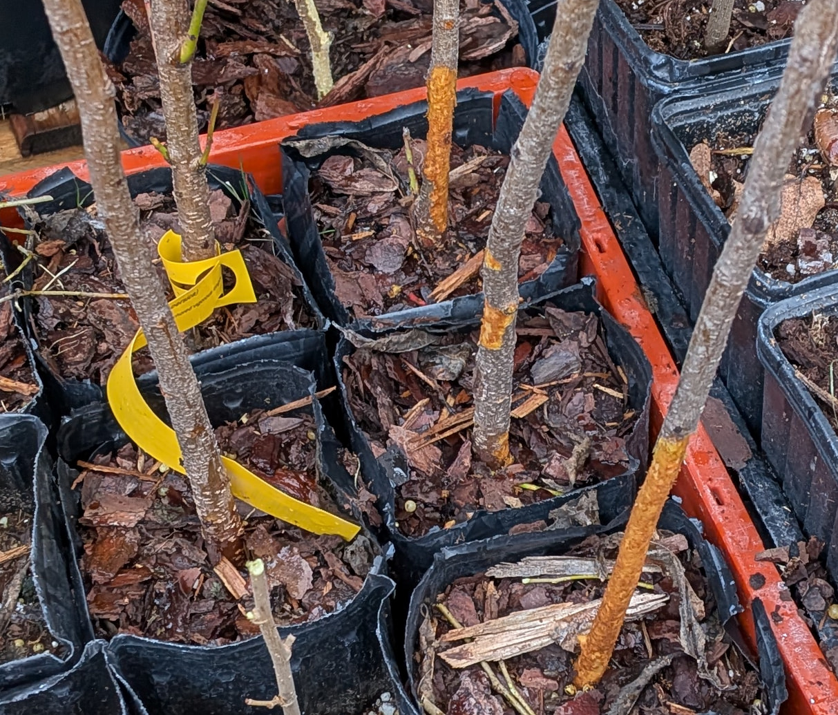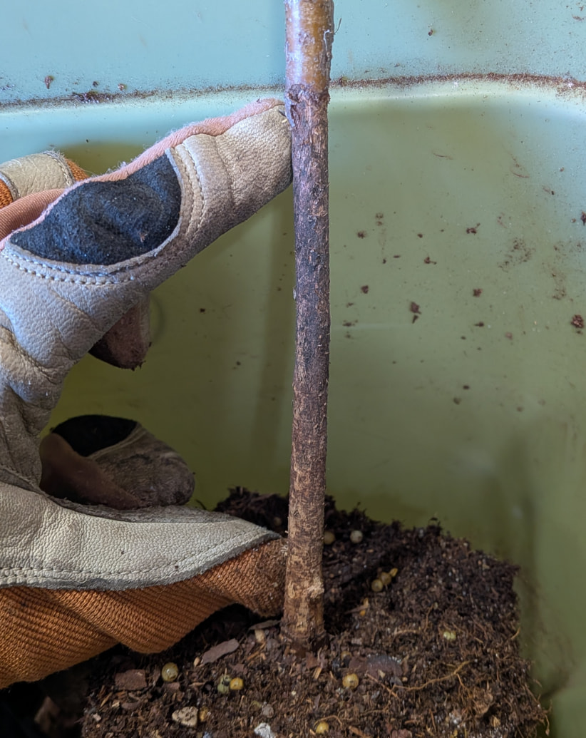 a couple of them were girdled all the way around and i had to go below soil level. i dont normally use zipties but figured they would help hold better here than my typical rubbers.