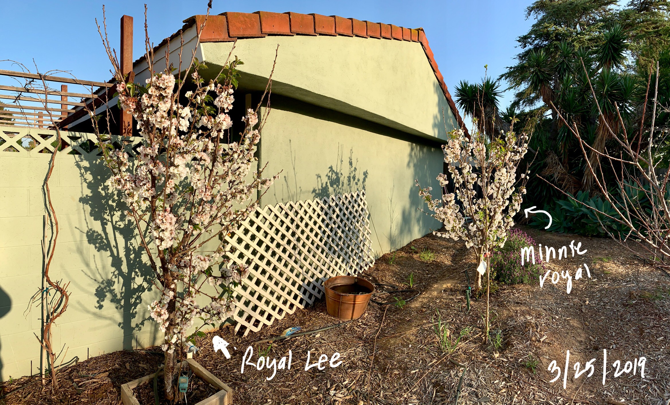 Last year I had loaded MR and RL with cherries that were all blown away by Santa Ana winds in late April 2017. Knocked away >95% of my cherries and fruitlets on pluerries, cherry plums, pluots, etc. I was kicking myself because the cherries looked ripe and I had deliberately waited because I thought they’d be more ready in May. I salvaged a total of 6 MR/RL cherries from the ground, but they were delicious.