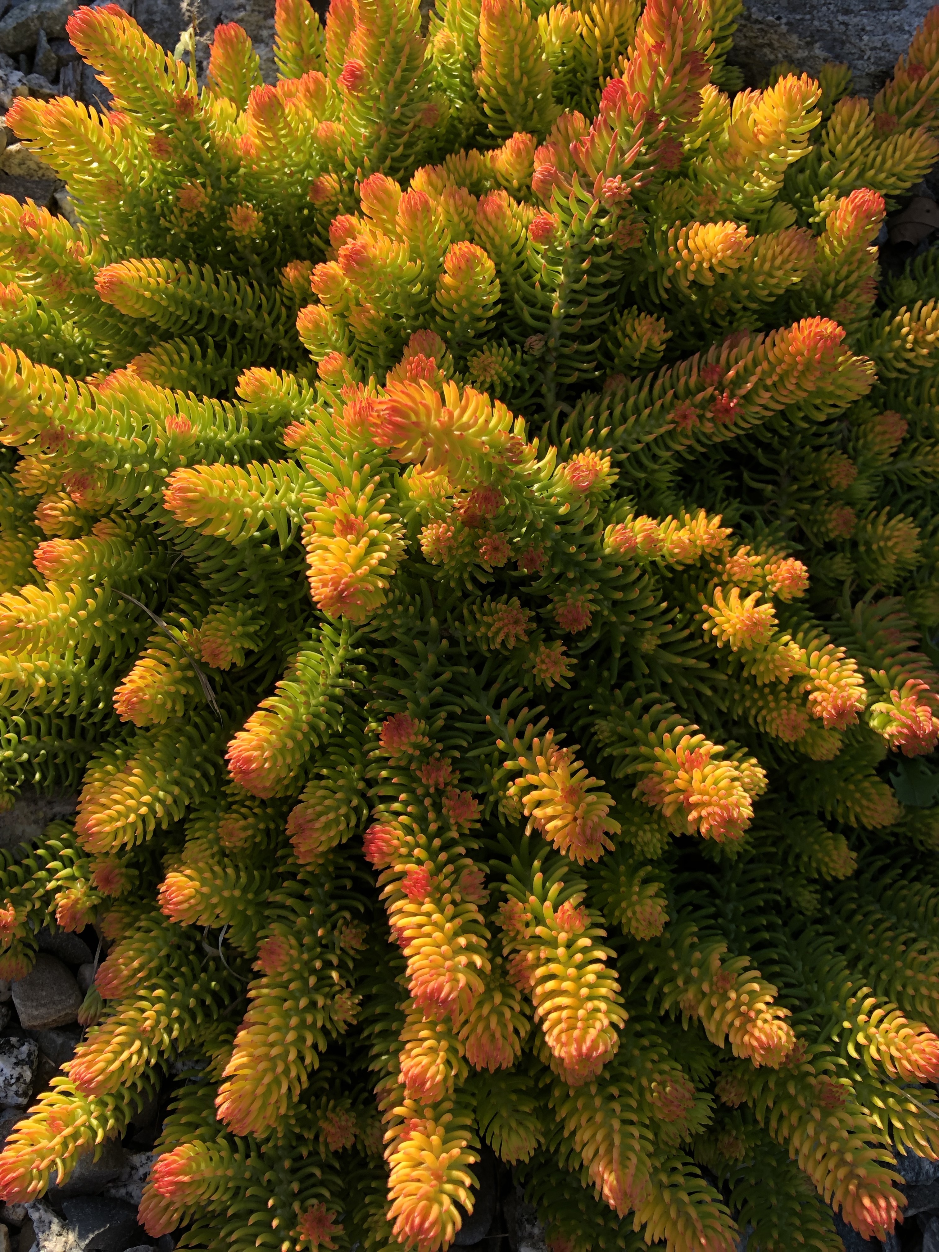 Here’s a picture from last summer & fall of the Angelina sedum (stonecrop). It’s a beautiful addition to a perennial landscape.