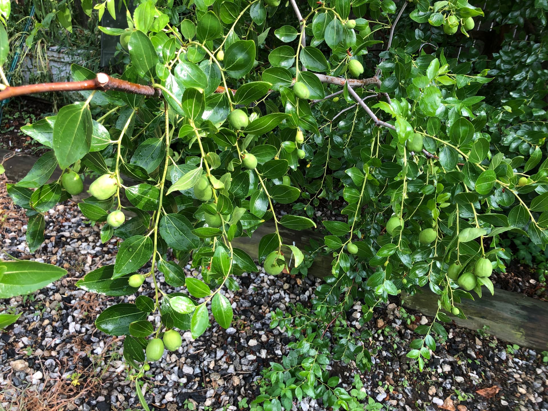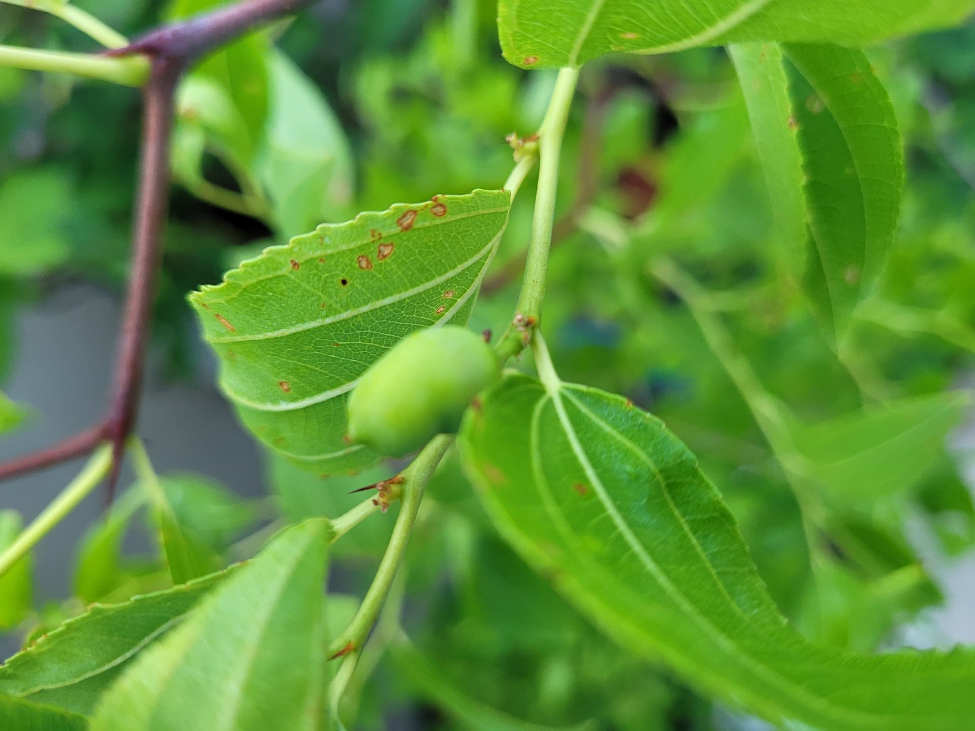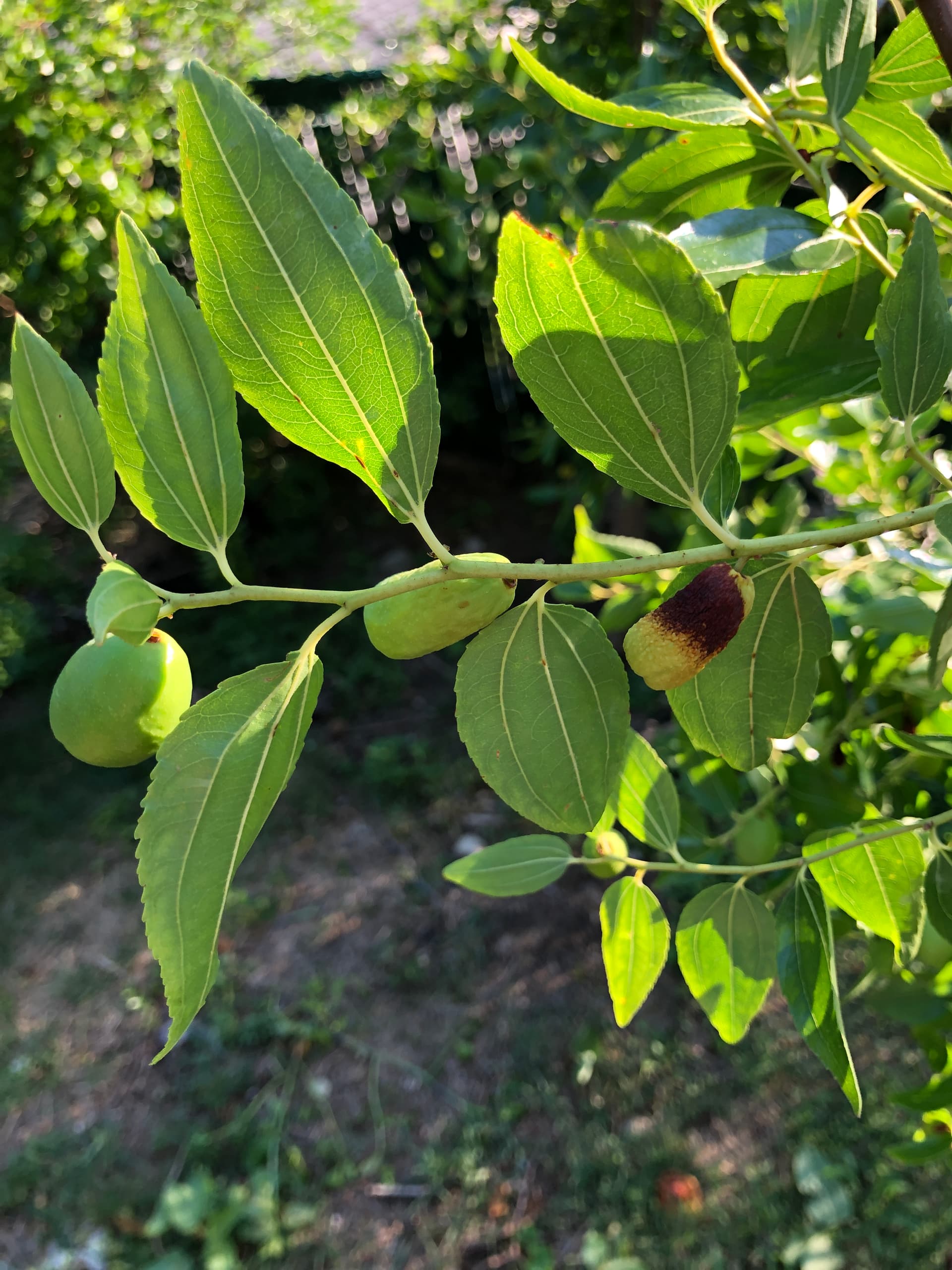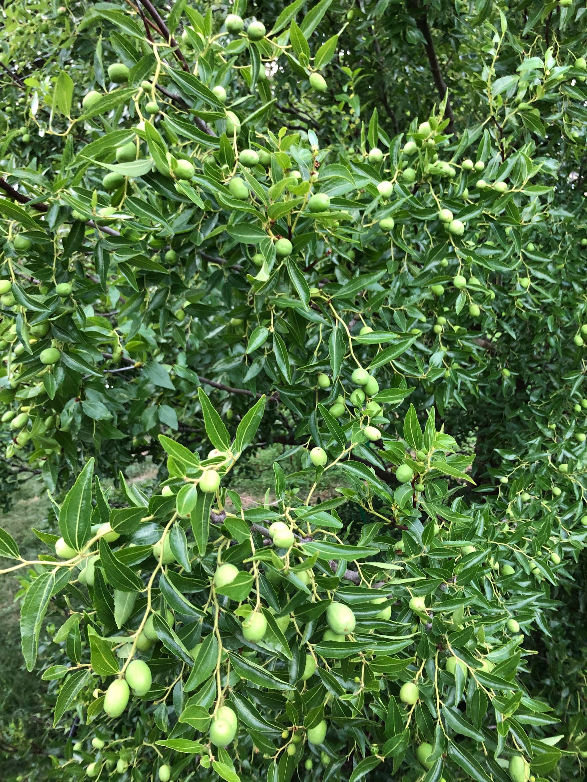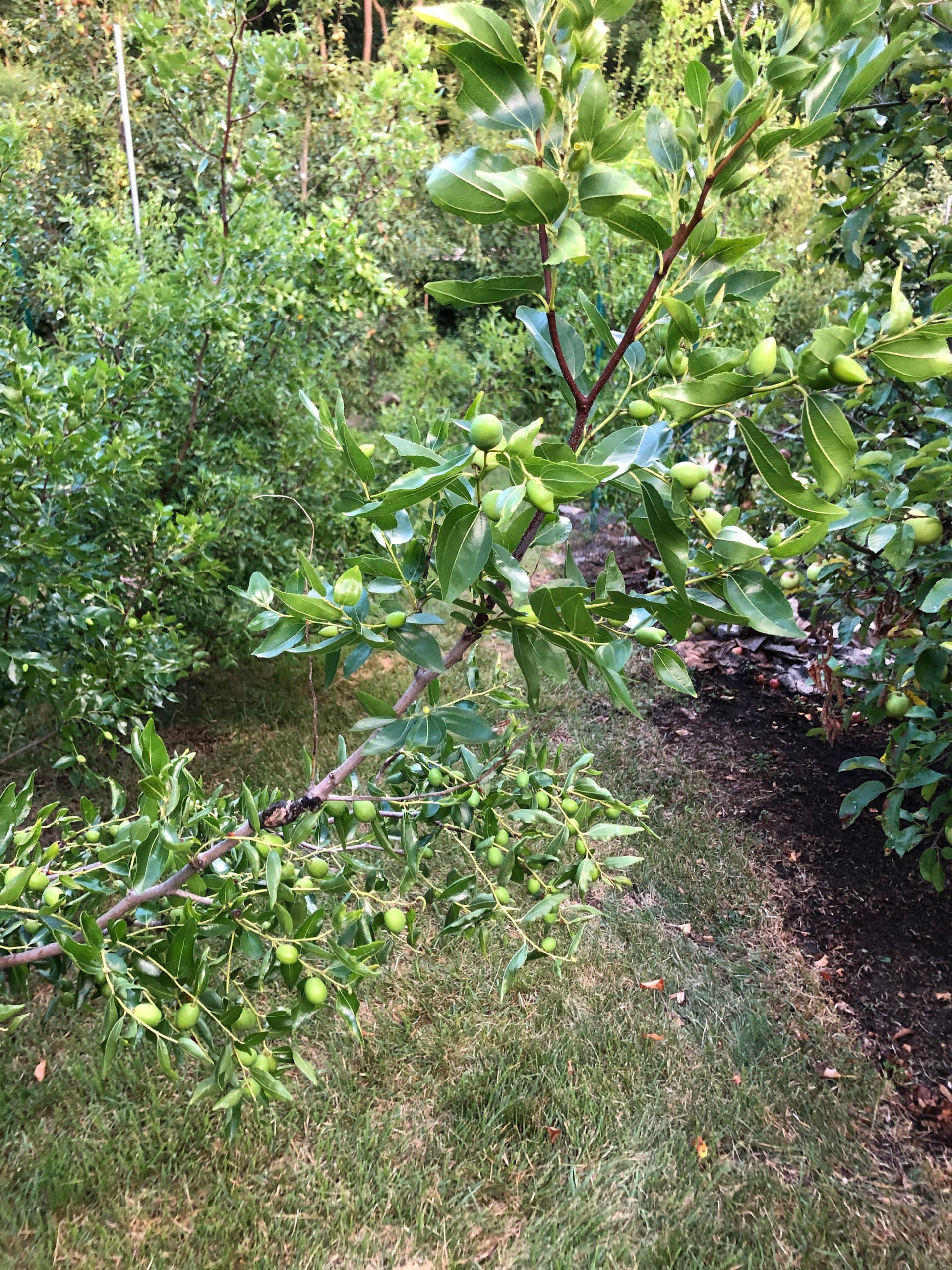 On a different tree (a Li) at this site, there is a Norris #1 graft from this spring. Today, I removed a large branch (which didn’t have much fruit on it yet, so I didn’t feel too bad…) which was shading it, so hopefully it continues to size up. I didn’t get too close of a pic, but you can see a curved pepper shaped fruit in the pic. Both Norris #1 and Texas Tart came from Fruitwood nursery. After adding them, I’ve now got all the jujubes they offer, other than Jin (I’ve heard it is more for drying).