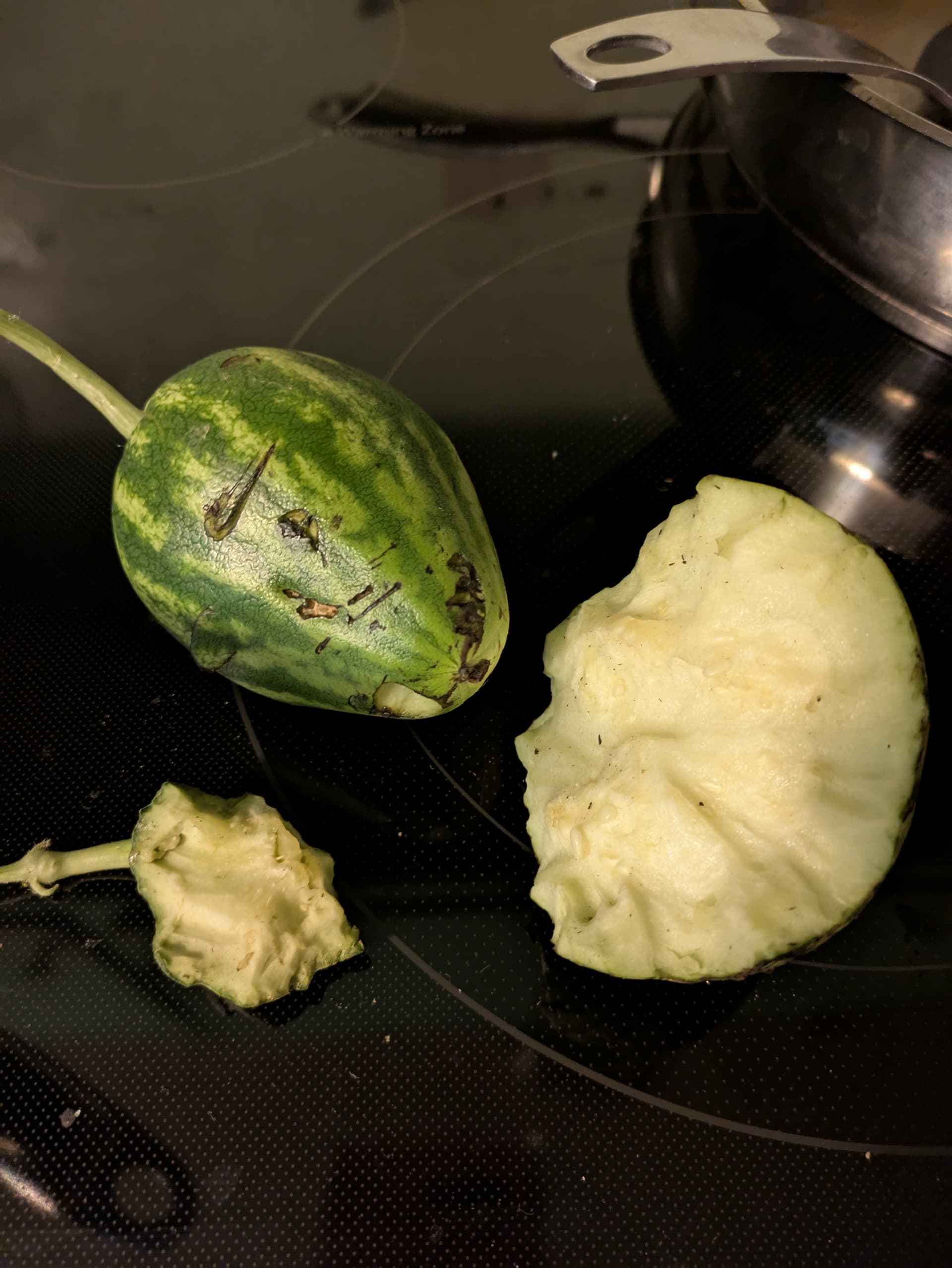 Still smells super grassy/cucurbitty. Not sure how to tell when they’re ripe, but the tentacle wasn’t browned either.