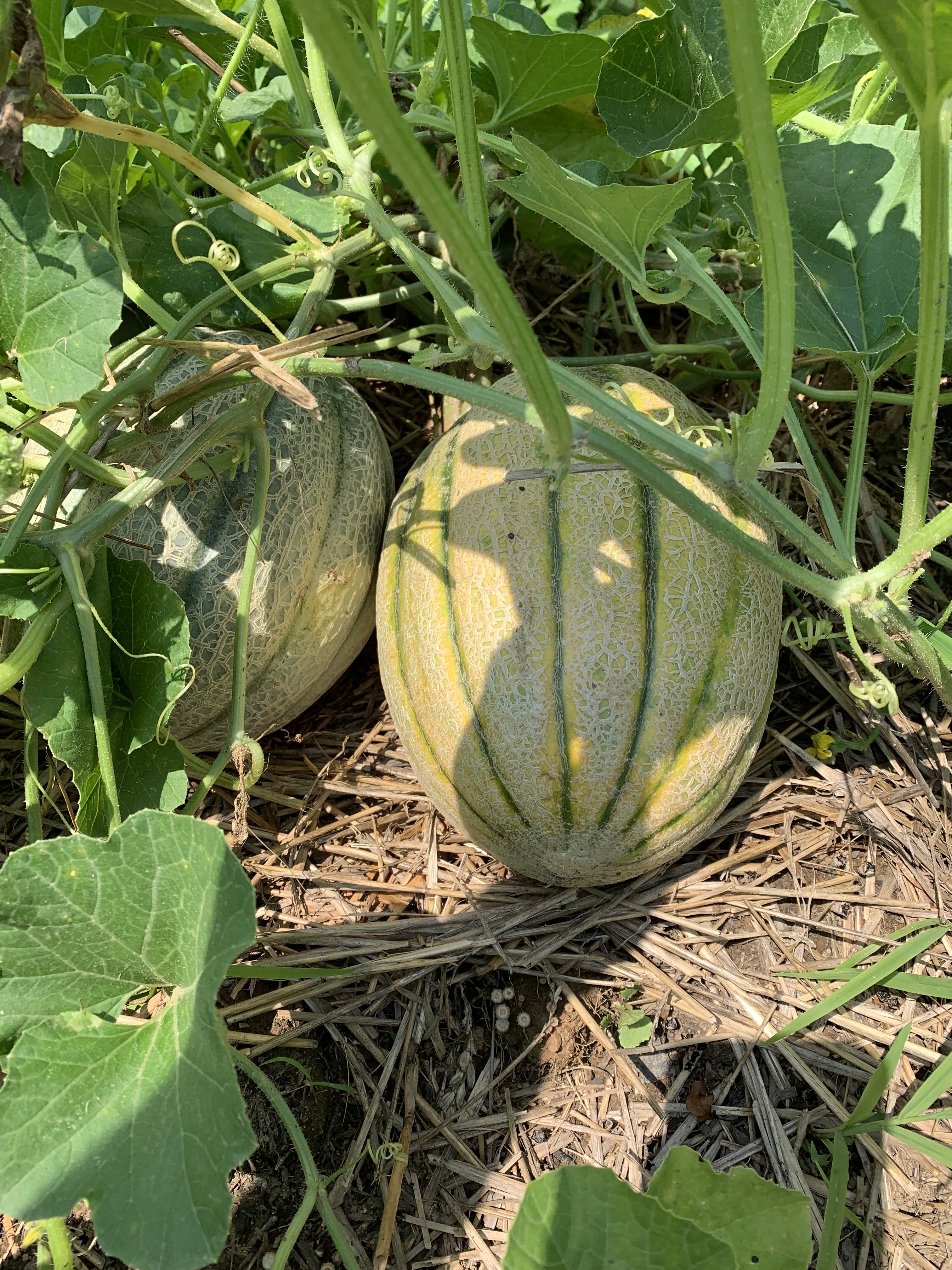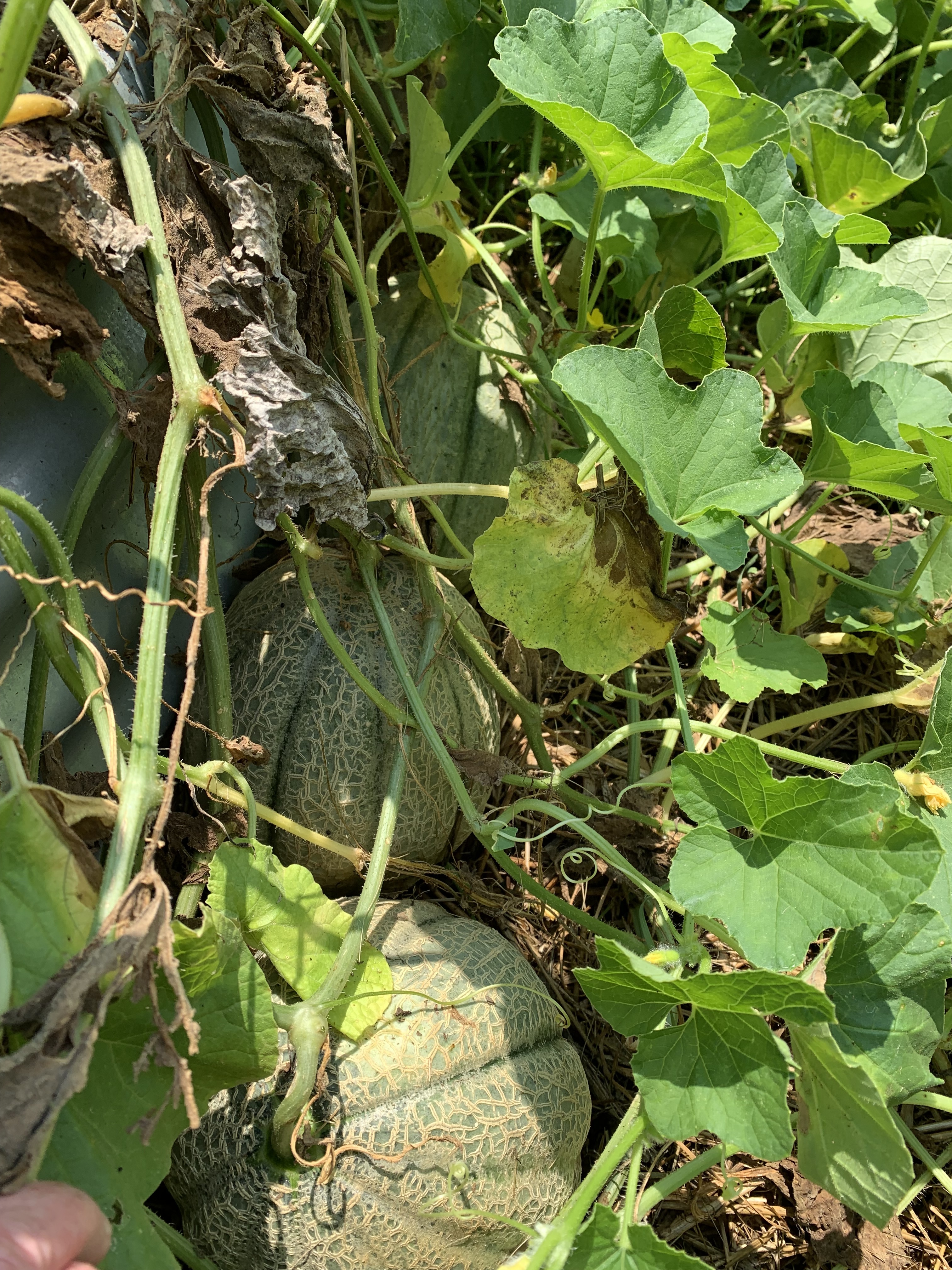 3 melons from that cantaloupe on the ground