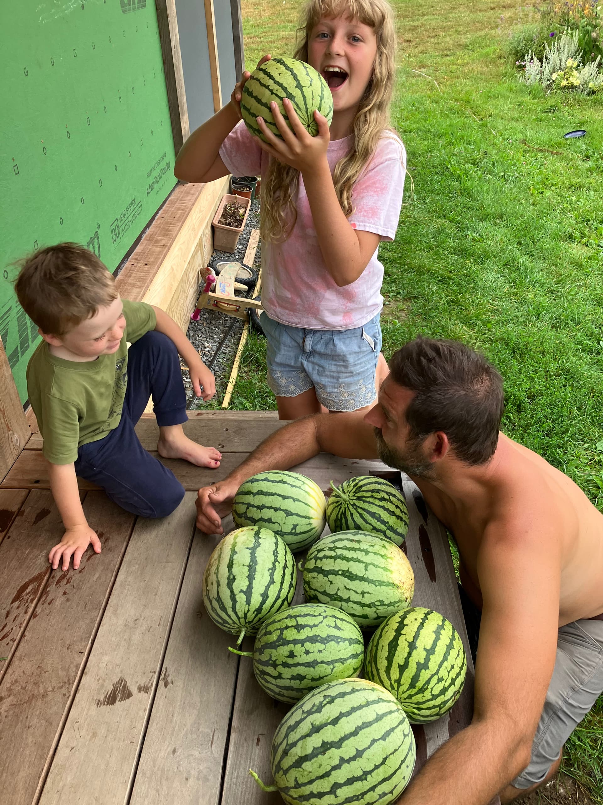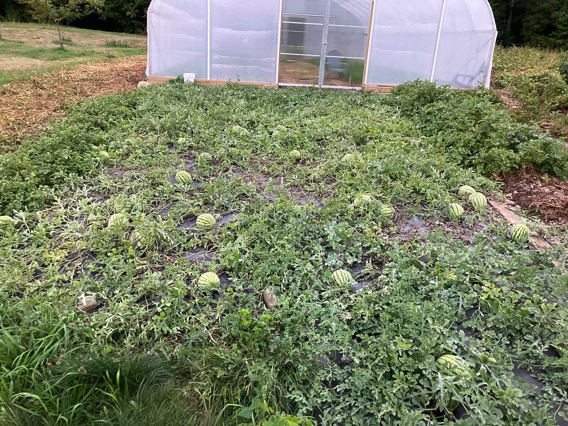 Trying watermelons for a second time this year, I got one big red moon and stars watermelon but the taste was all water no sugar, all in all a failure. I messed up pretty much everything to be fair.