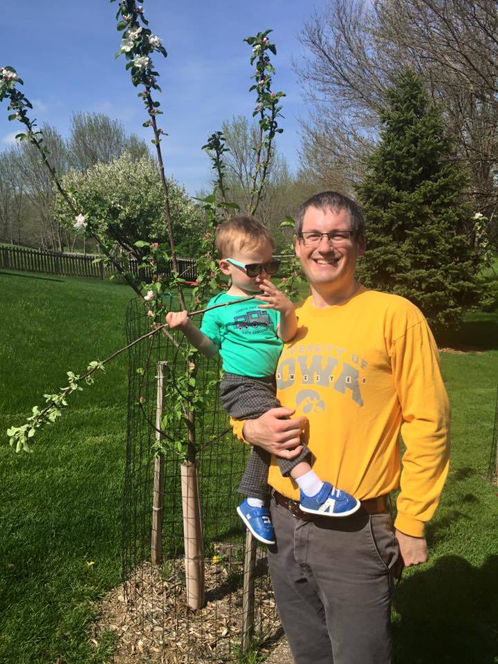 This is my profile pic. It is a little dated now, as kids grow so fast. This is my son and I in the spring of 2016. He is holding a branch I pruned off to make a graft