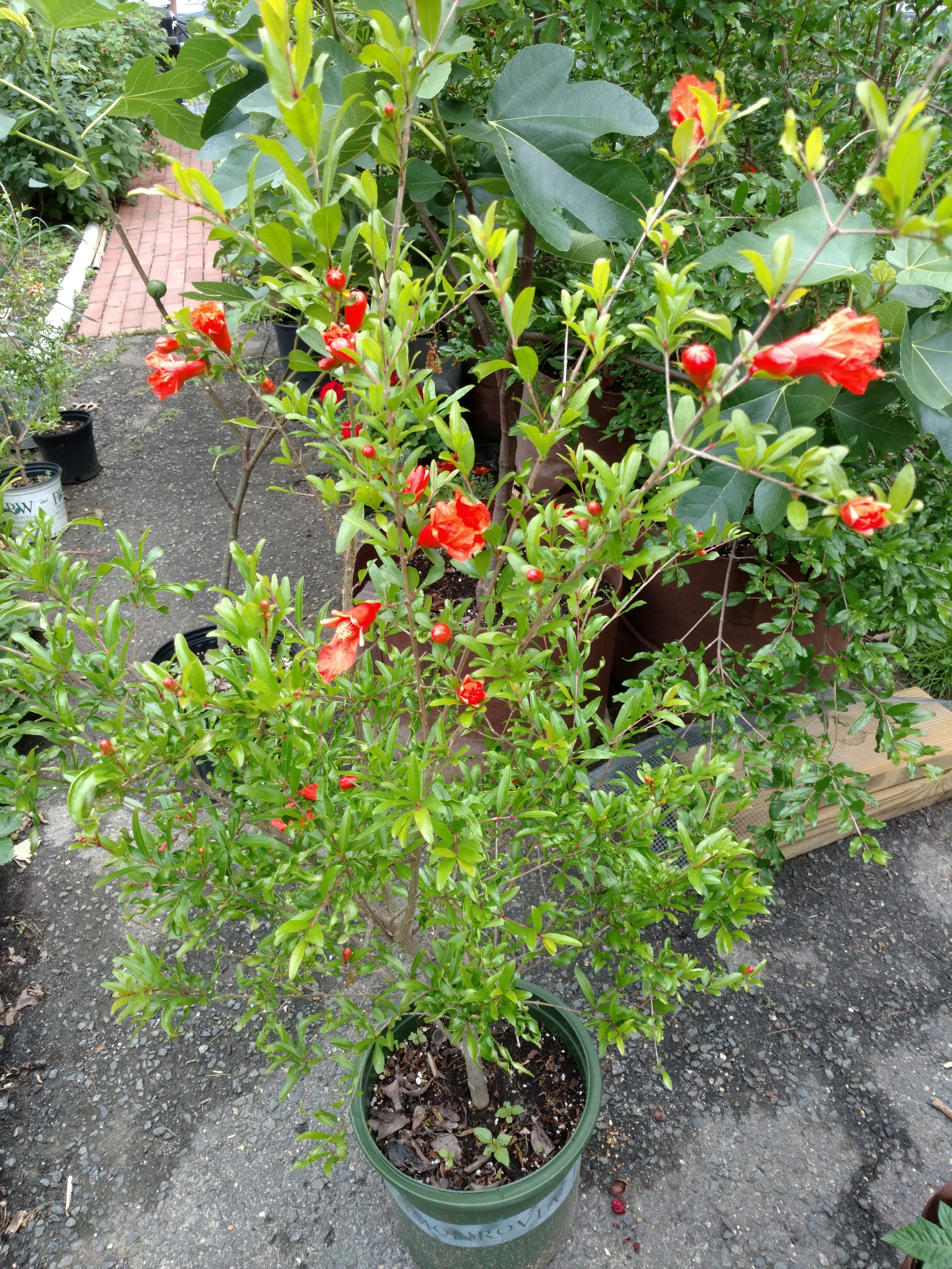 My Poms have begun to flower with Hyrdanar X Goulosha being the first out of the gate. This dwarf variety from the Russian collection was supposedly developed for high density production, but I haven’t been able to find out much about the quality of the fruit, except that it was good for juice. I’m pretty sure the seeds are on the harder side. I have several started from cuttings 2 years ago, still in smaller pots but all are flowering. The largest, in a 3 gallon pot, must have 50+ buds, some already flowering. Parfianka has one flower open with many more coming on and Desertnyi and Salavatski are just behind that. I have Salavatski and Kazake in the ground and both had some bud die back at the tips from the late freezes so that has set them back. Kazake has never flowered. All the others are in containers and were in an unheated garage and did great.