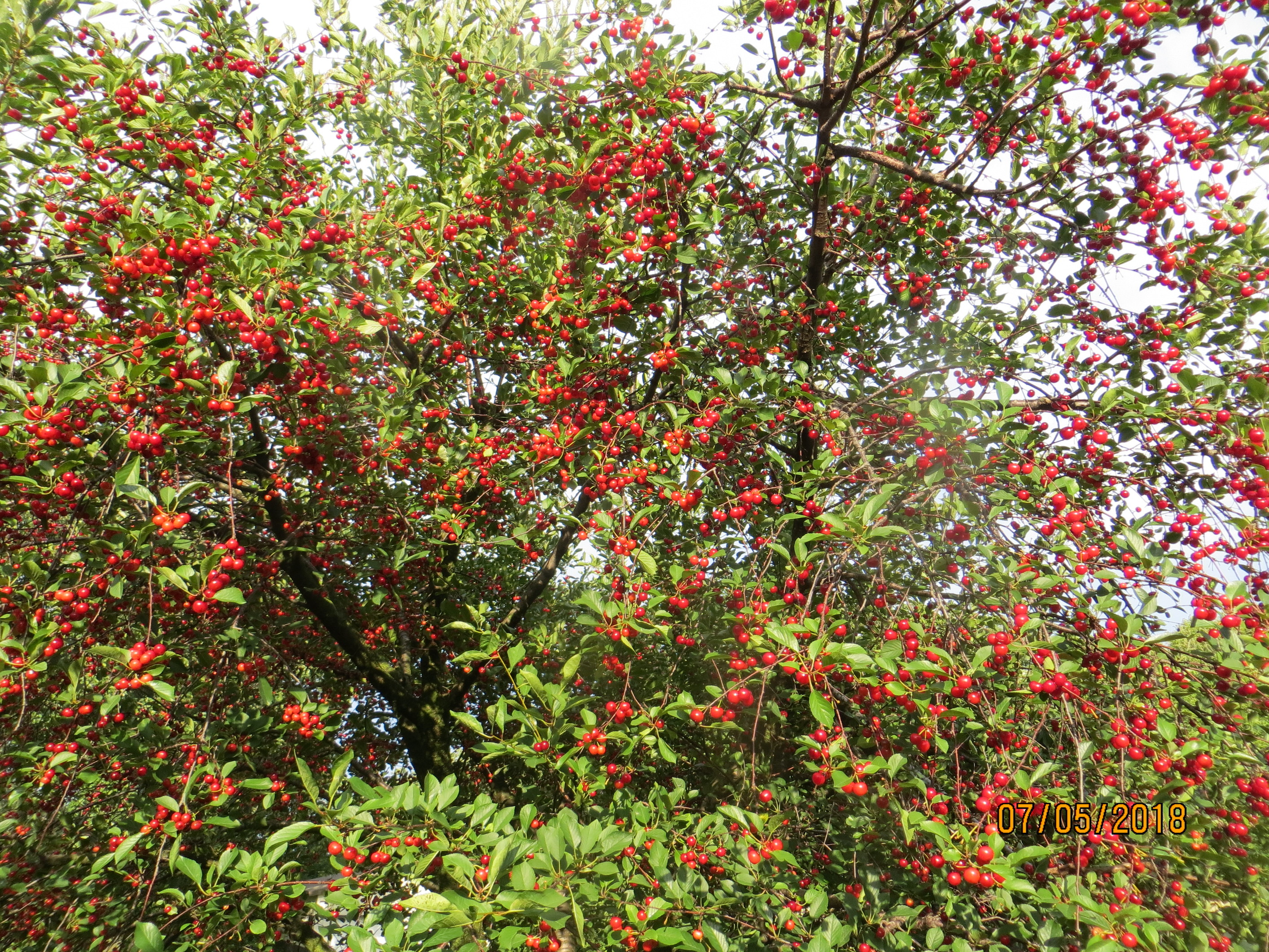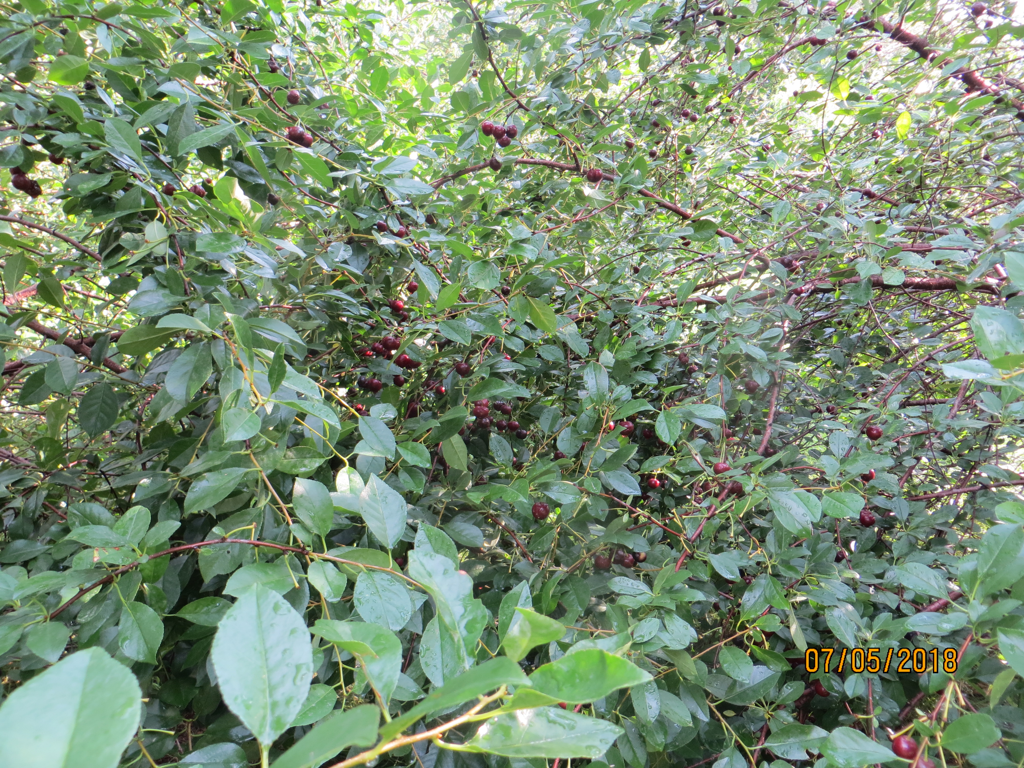 My CJs are done now. I had to strip the trees before another rain storm because they were all going soft and rotting. They were fine…nothing like a sweet cherry…but still good. I’m going to hack mine back. No way am i letting this thing fruit anymore then it does now. It was a pain to harvest what i did and then the rest was thrown into the yard for the birds and bugs to fight over. Lots of rot on them as they turned darker… they should have probably been harvested earlier.
