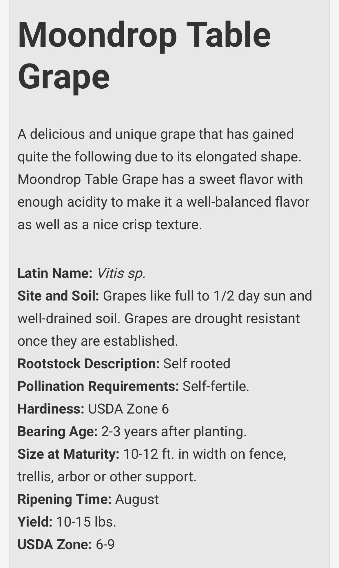 For anyone who may enjoy Moon Drop Grapes, it appears that One Green World is now offering them. 13 currently still in stock at time of this post.
