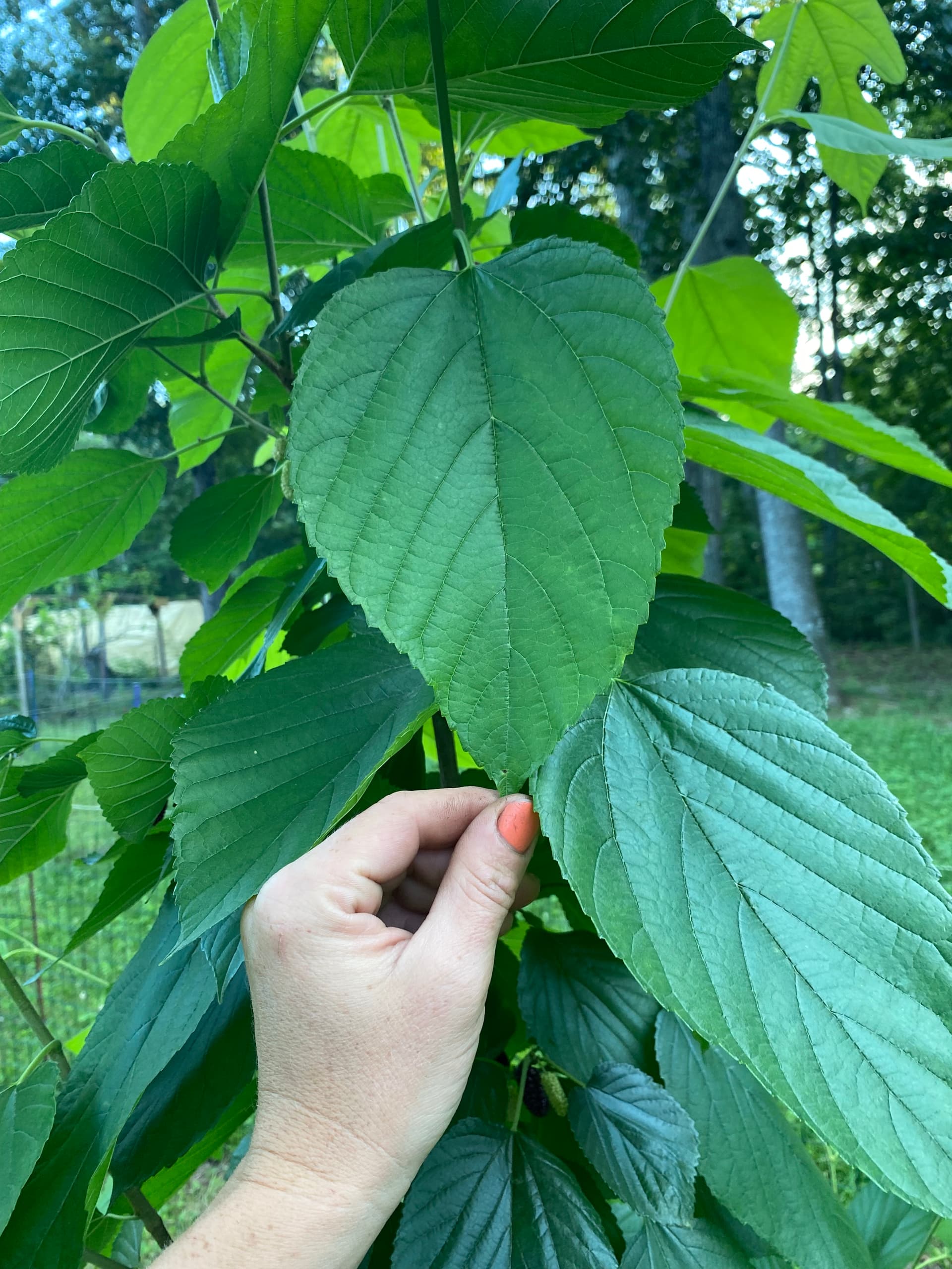 I’m actually not sure ours is a true Red Mulberry, it seems to fit all of the characteristics except for “hairy” under leaves, not sure how big these hairs are suppose to be…… anyone have any idea? I guess it’s a hybrid unless I’m missing something.