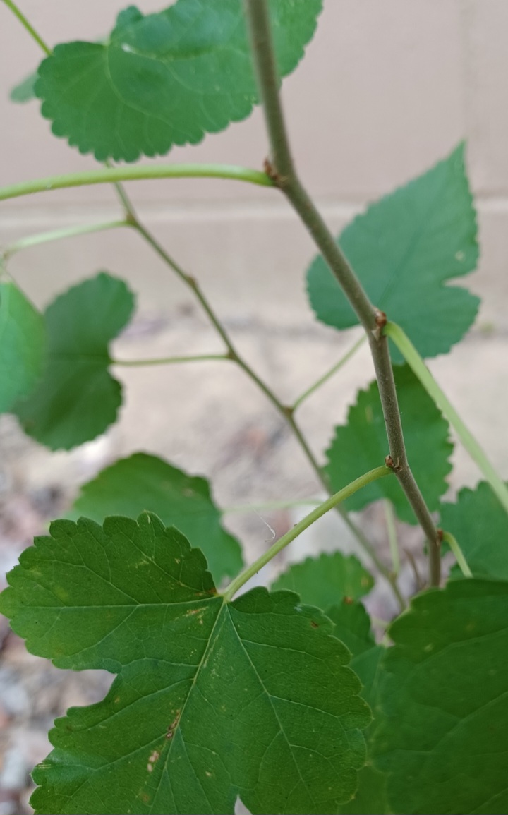 Oh, that mulberry weed. I often hear people call mulberries weeds. Yours has a woody stem, so definitely Morus and not Fatoua.