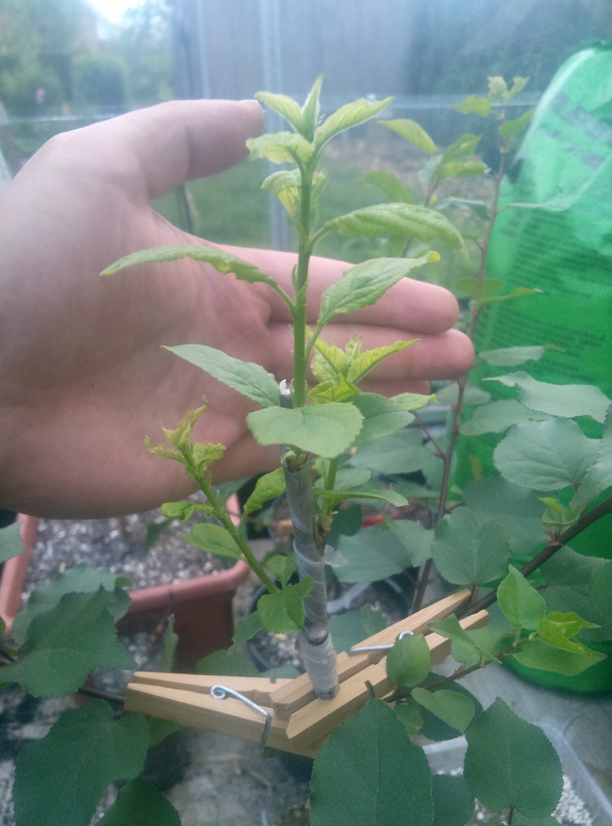 I know it is off topic but I’d like to show a last update of my angled cleft graft. At least I’m touching the topic since it will be a multi grafted apricot tree by next year…