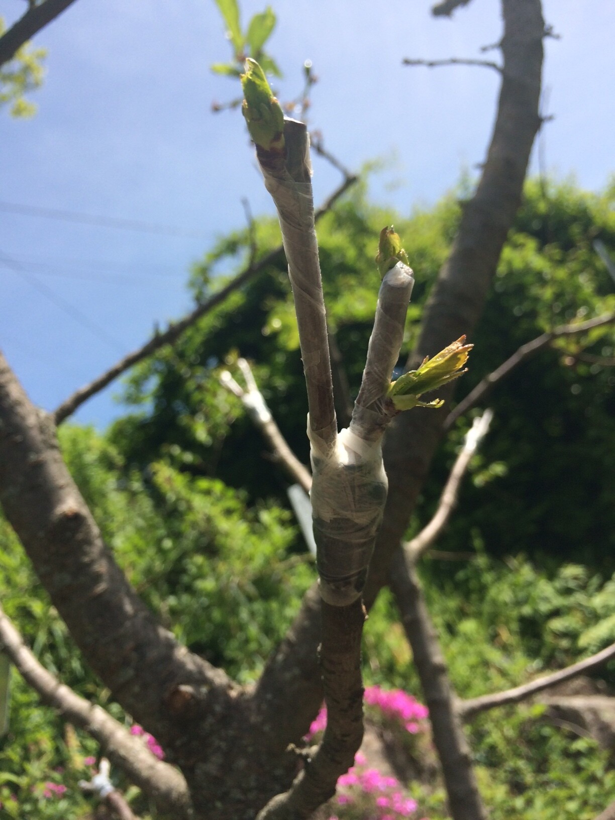 What i’ll do is place 3 buds on one branch…or 2…usually at least 2…usually 1 of those 2 takes…i have a few this year where all 3 took…so i usually cut off to the lowest one since i like lower branches. I had very good success last summer (this years growth)…even have a few of those buds with fruit holding…not sure if that is smart to leave them. I like sitting out in the hot sun…90F ///bud stick in my hand…razor sharp knife…sweat dripping down my face…mosquitoes biting me nonstop…kids crying…wife yelling…neighbors staring …as i bud away . Someday robots will do it for us…we’ll sip lemonade and yell obscenities and throw things at them while they work
