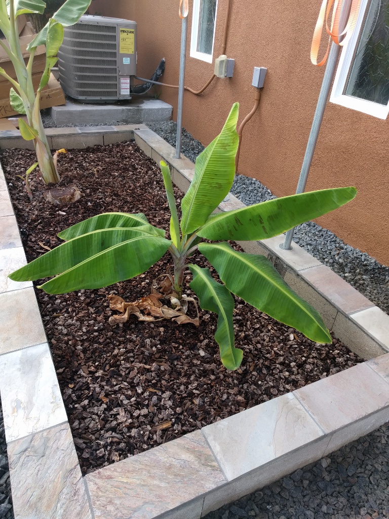 LOL. Yes, about a half dozen leaves and six inches of height – four of which are buried in the added mulch.