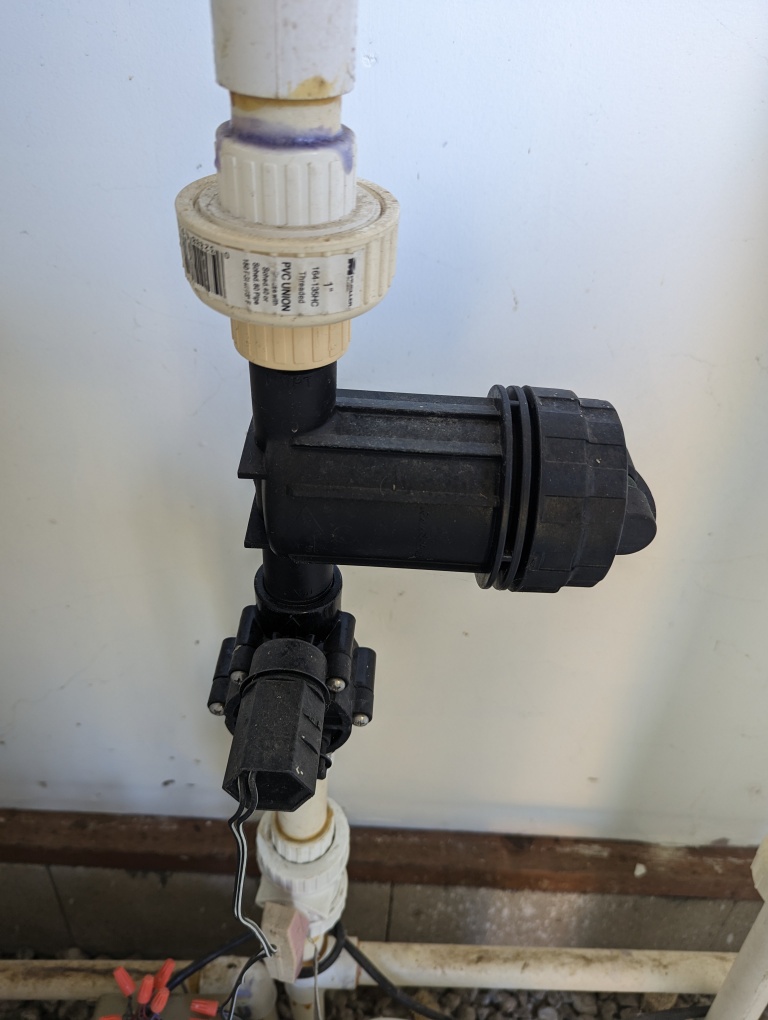 I maintain a plant repository on the grounds of our 1/4 acre home in Vista. There are many trees, vines, shrubs, and planter beds here. I have an automated irrigation system, but the municipal water pressure is relatively low (50 psi). I have found that 1 irrigation valve on a 1" supply line can only adequately disburse water to 4-5 in-ground trees. So I must compensate with many irrigation controllers and valves.