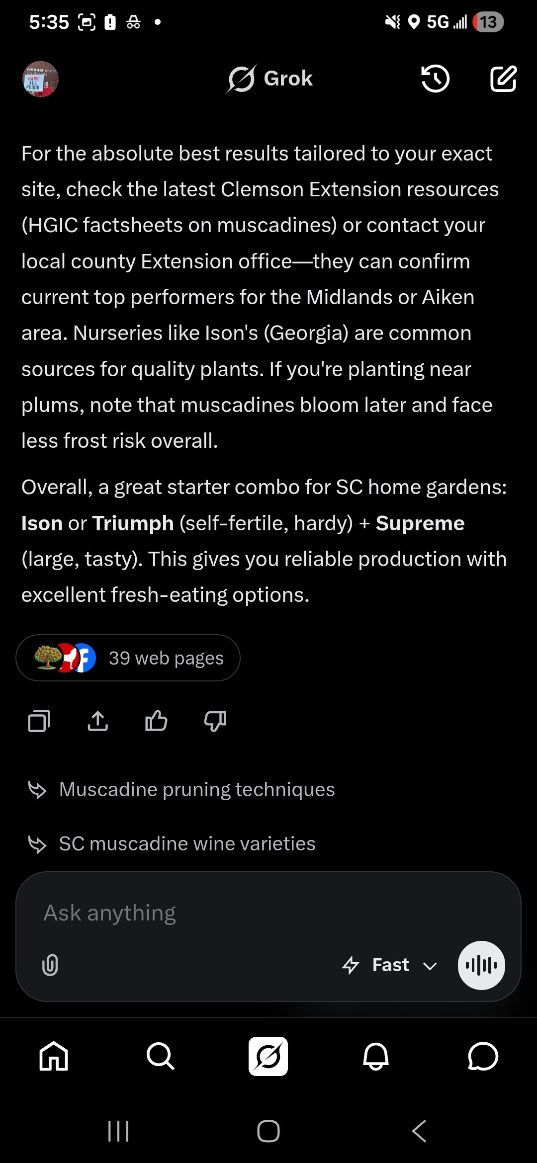 I’ve done a lot of research on the internet, including this forum and I’m looking for muscadine recommendations for South Carolina, zoned 8A. I’m looking for a good combination and I’m considering Lane & Sweet Jenny.