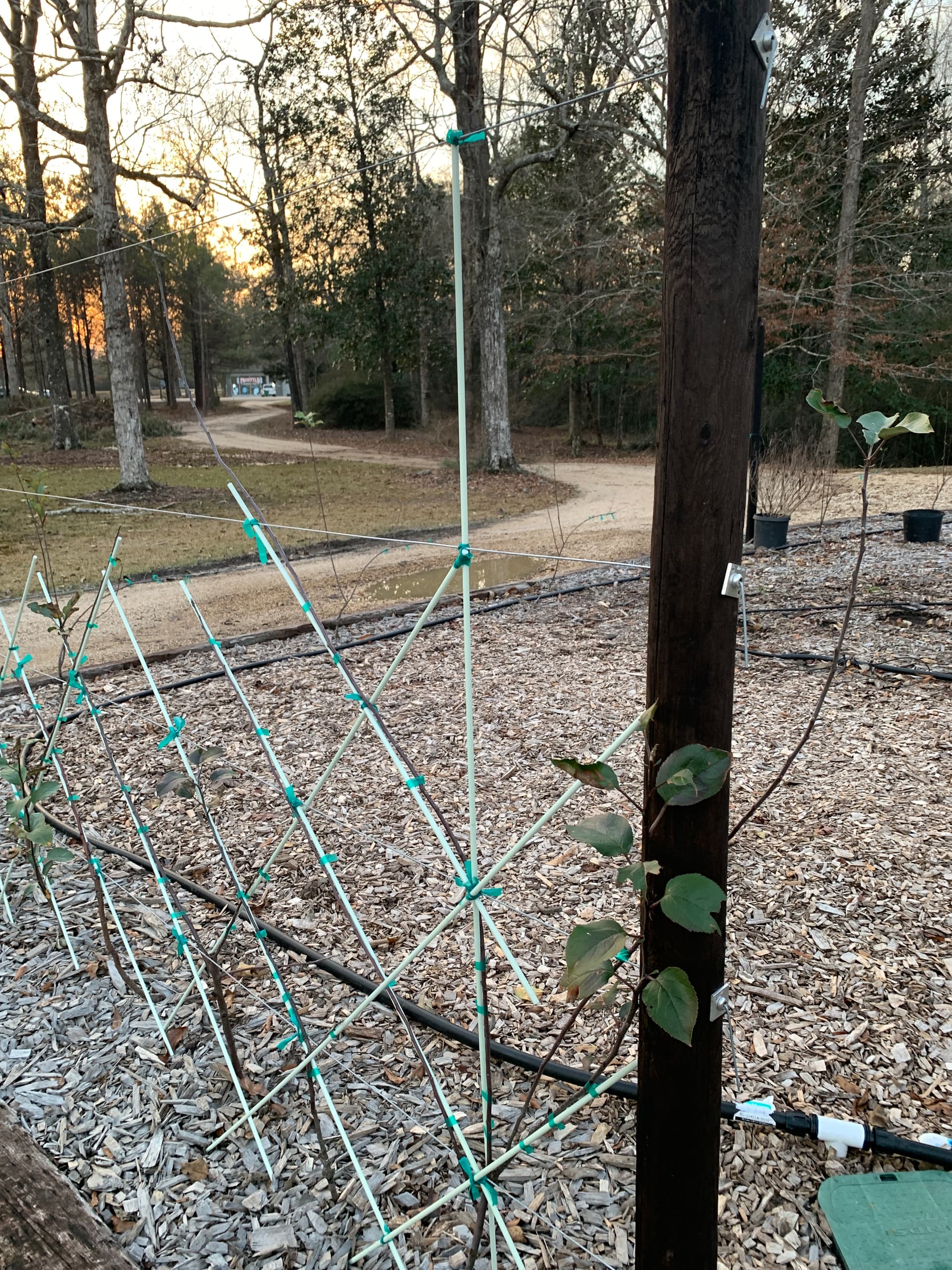Planning on 20ft spacing of plants and poles. 8ft treated round posts from TSC 3ft deep. 6” end posts, 5” support posts. H-bracing the ends 6.5ft apart. 5ft height for wire.