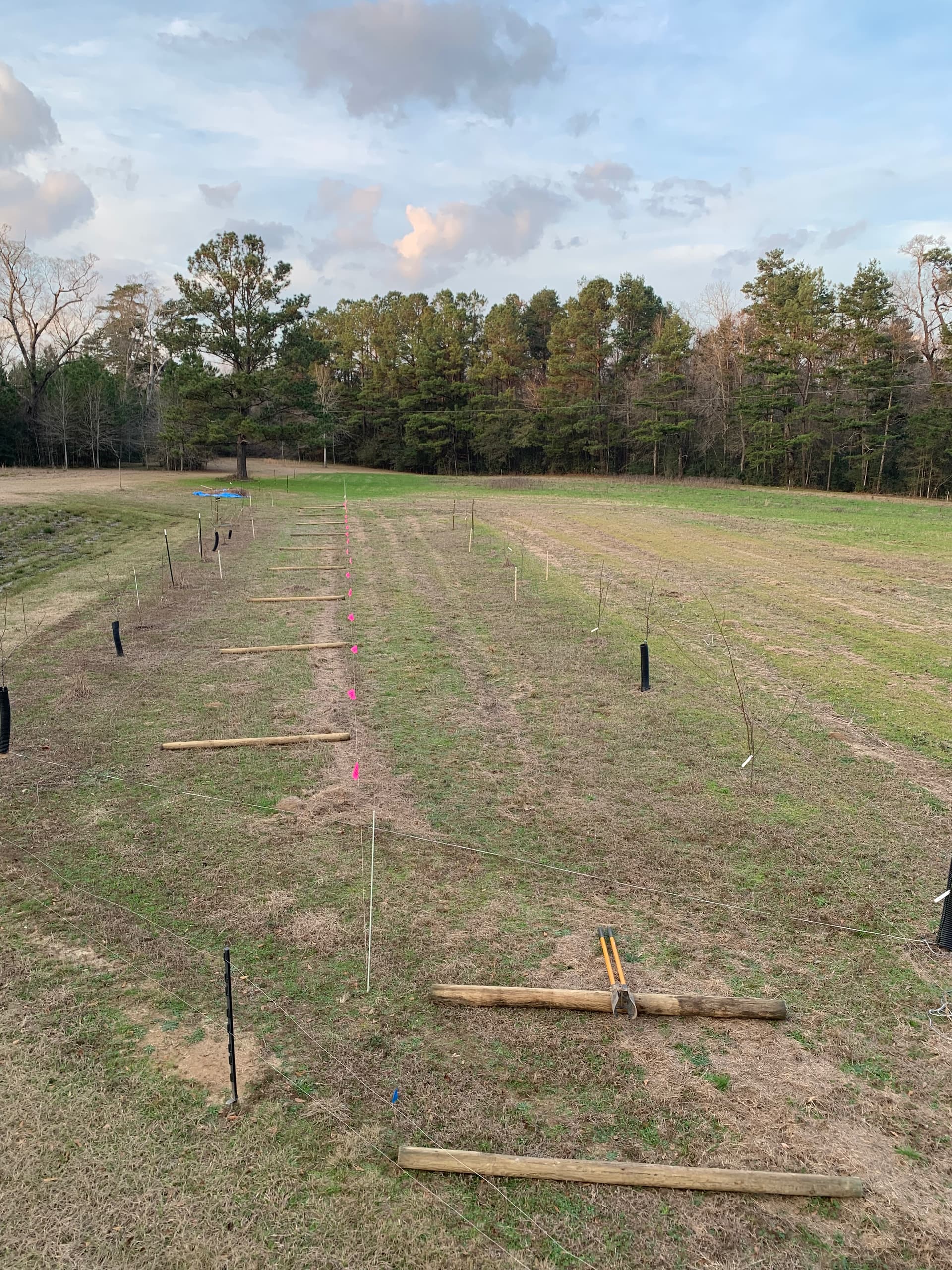 There’s 15ft on each side of the vines to the rows of fruit trees: pears, plums, persimmons and blueberries. Rows are N-S.