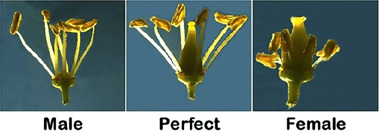You can google muscadine blooms and see the three types. Male, female, and self fertile. In the wild most are male and some are female but it would be unusual to see a self fertile. The self fertile has been used/crossed in to the point that it is what most growers want. Self fertile tends to produce larger crops and they have developed many varieties that rival the largest females.