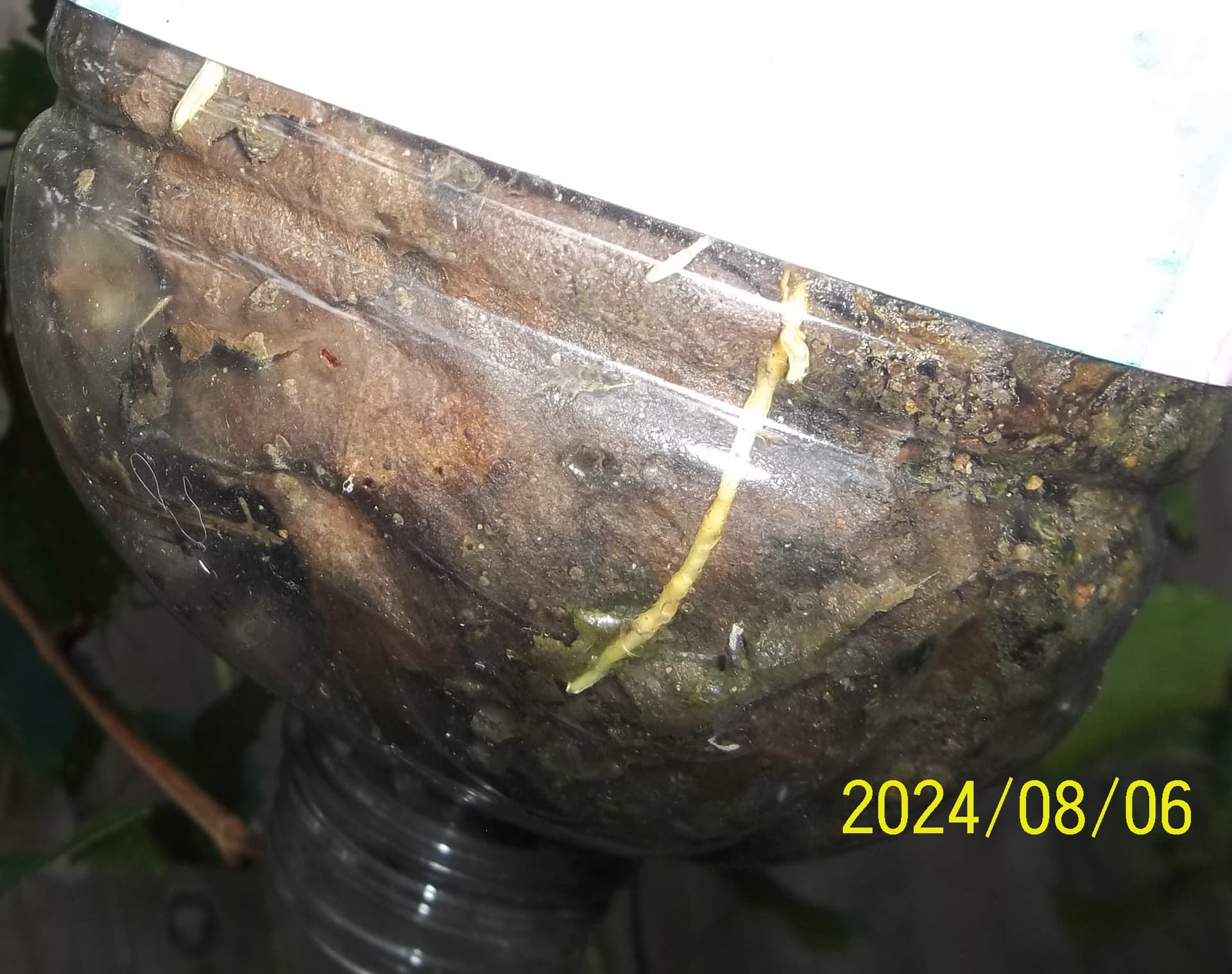 How long does it take to see roots on a muscadine air layer? This time it took roughly 5 weeks. I have air layered several muscadines and 5 weeks to root is typical. I normally let more roots developed before detaching.
