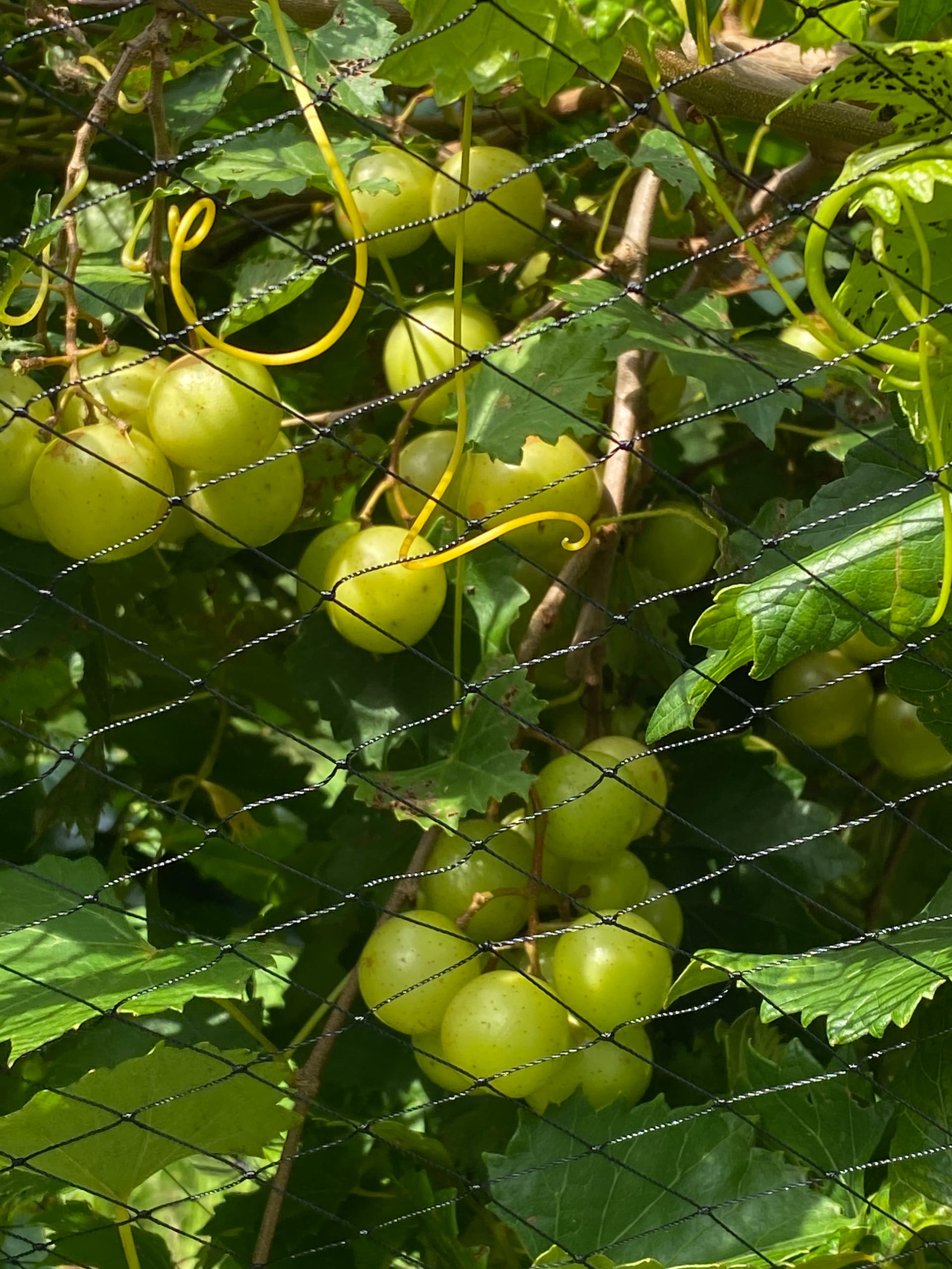 I had hoped to create a lightweight frame, of sorts - to give me a space between the net and the vine, so the birds cannot reach the fruit on the outside. Had to leave that for another year, because there is just too much to do.