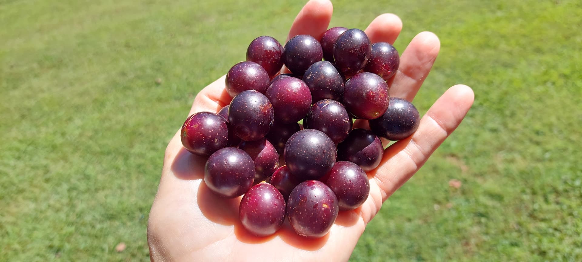 If you’re looking for a well behaved large black muscadine that is self fertile, Paulk Muscadine might be a good choice. The long stem also makes them easier to pick without leaving a wet scar.