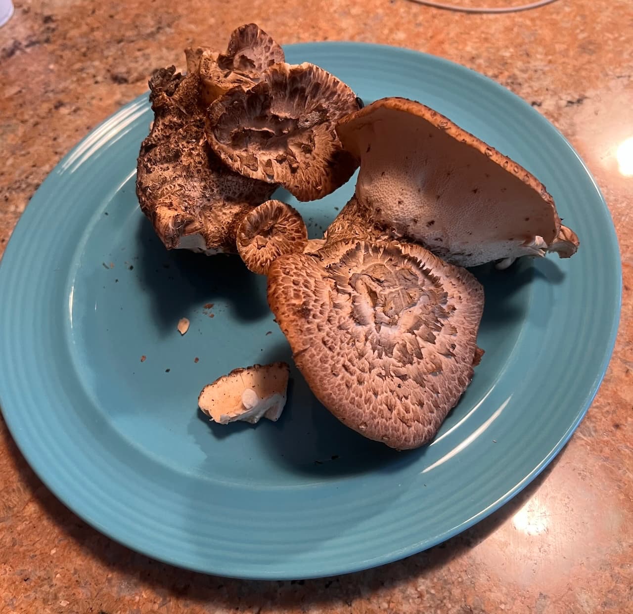 Twice a year (May & Sept) I get Dryad’s Saddle from a broken down Sugar Maple struggling to survive nearby. It’s tasty, if picked while still young. I picked these today. Probably there’ll be more over the coming week.