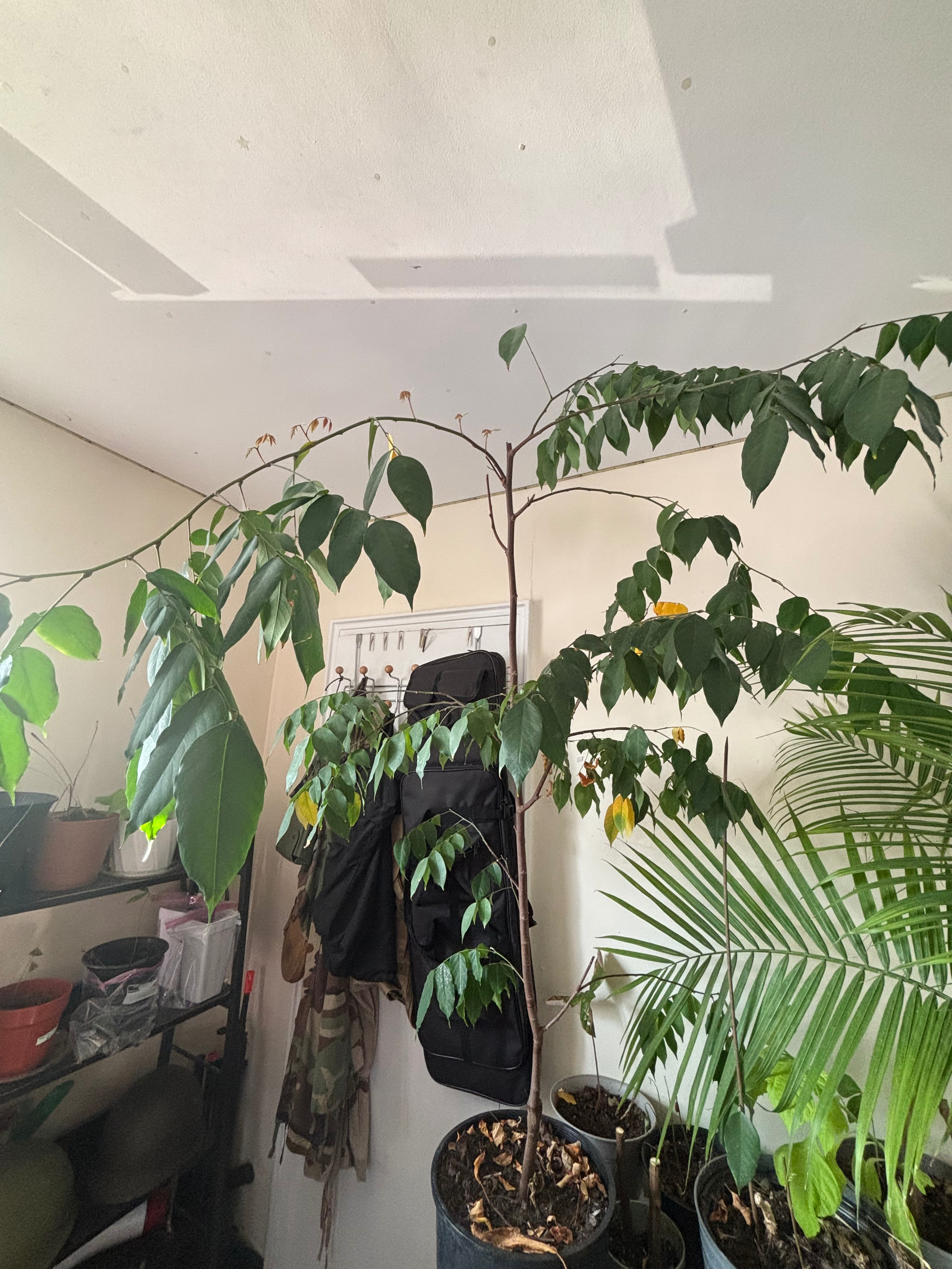 My newest success is my starfruit. It is at least 3 years old but probably older and i think its grafted. This is another one that drops leaves a lot. It seems to grow constantly even indoors (usually fruits stop growing during the winter and start again in the summer). Its easy to grow like a house plant just water when the top dries its a 8.6/10 for how easy it is to grow, the taste is probably a 9/10 depends on the variety, it looks very good has pink flowers and pink/red new growth about a 8.8/10 and general its a 8.7/10.