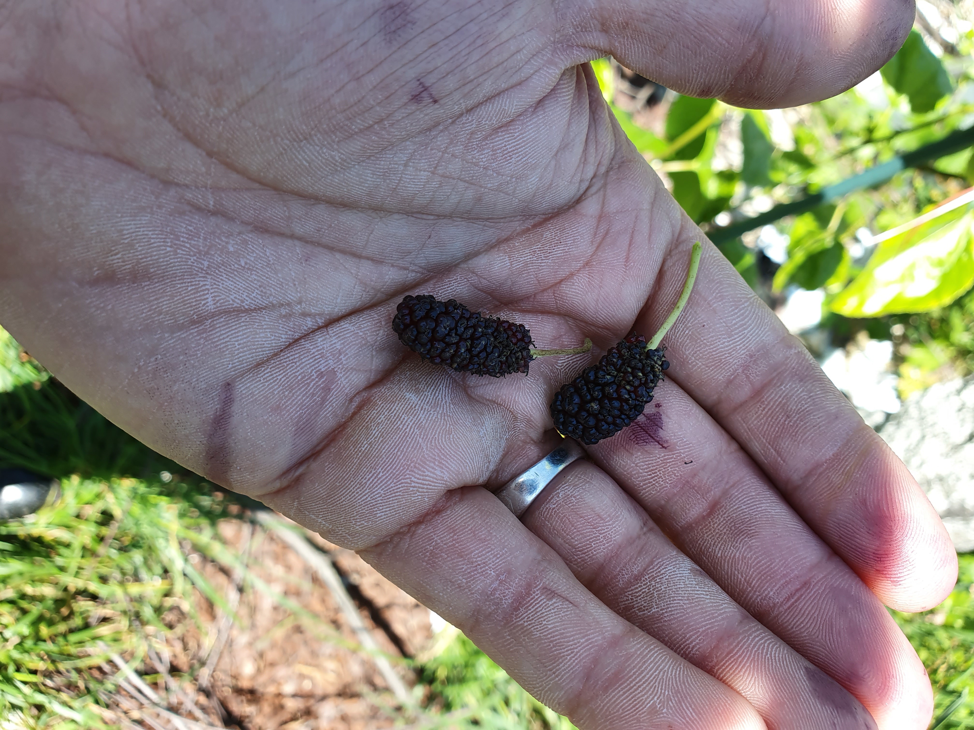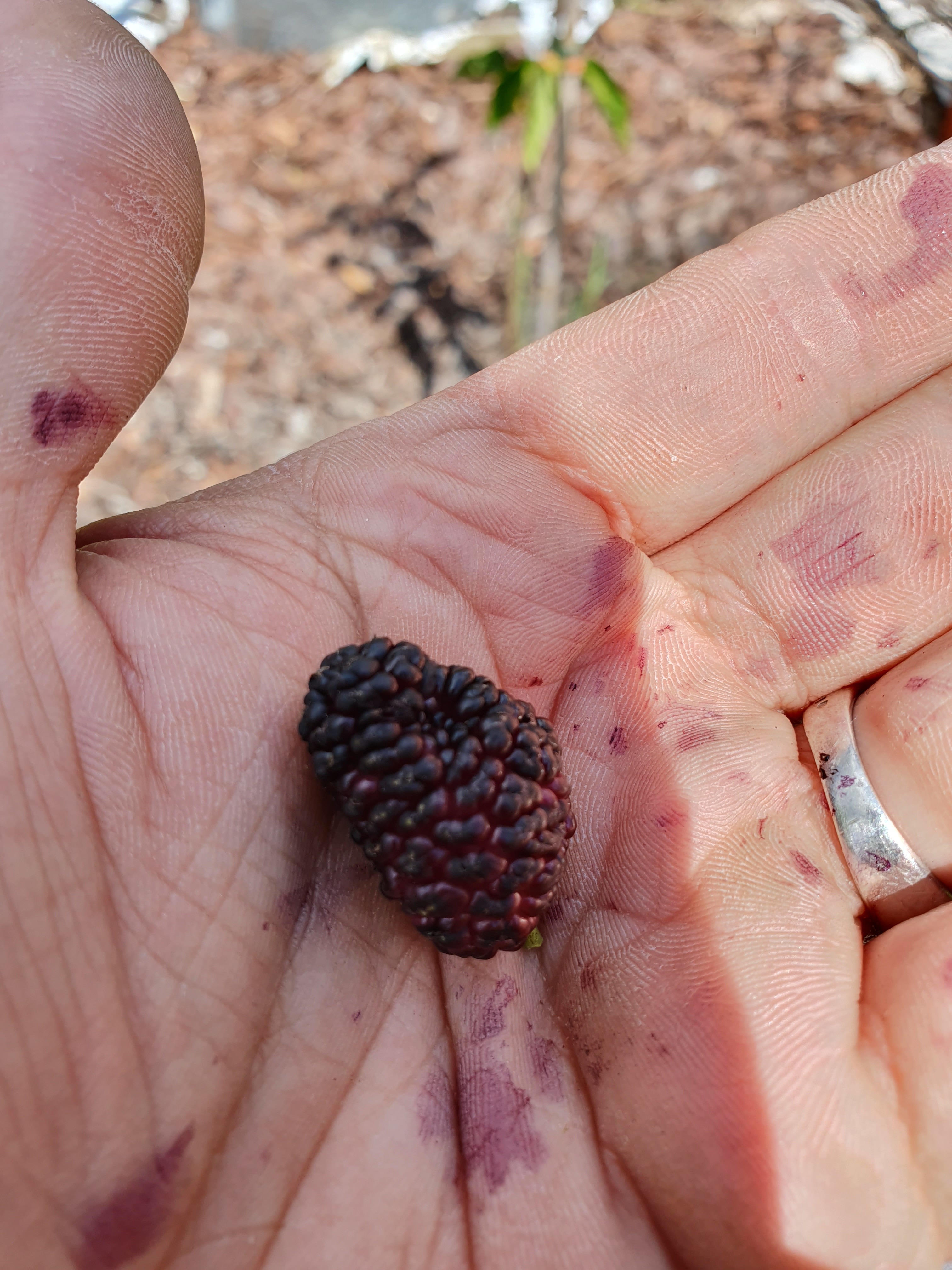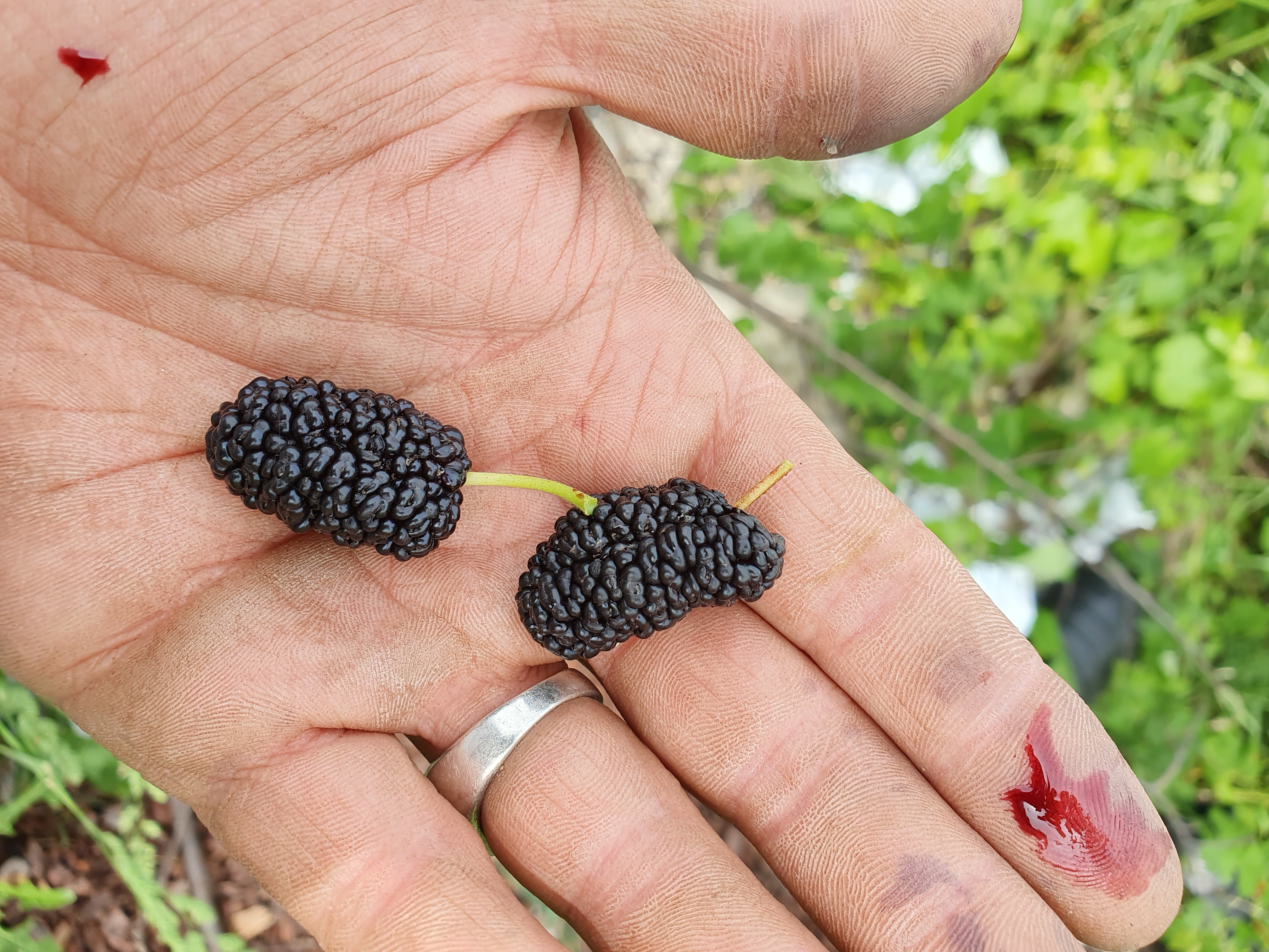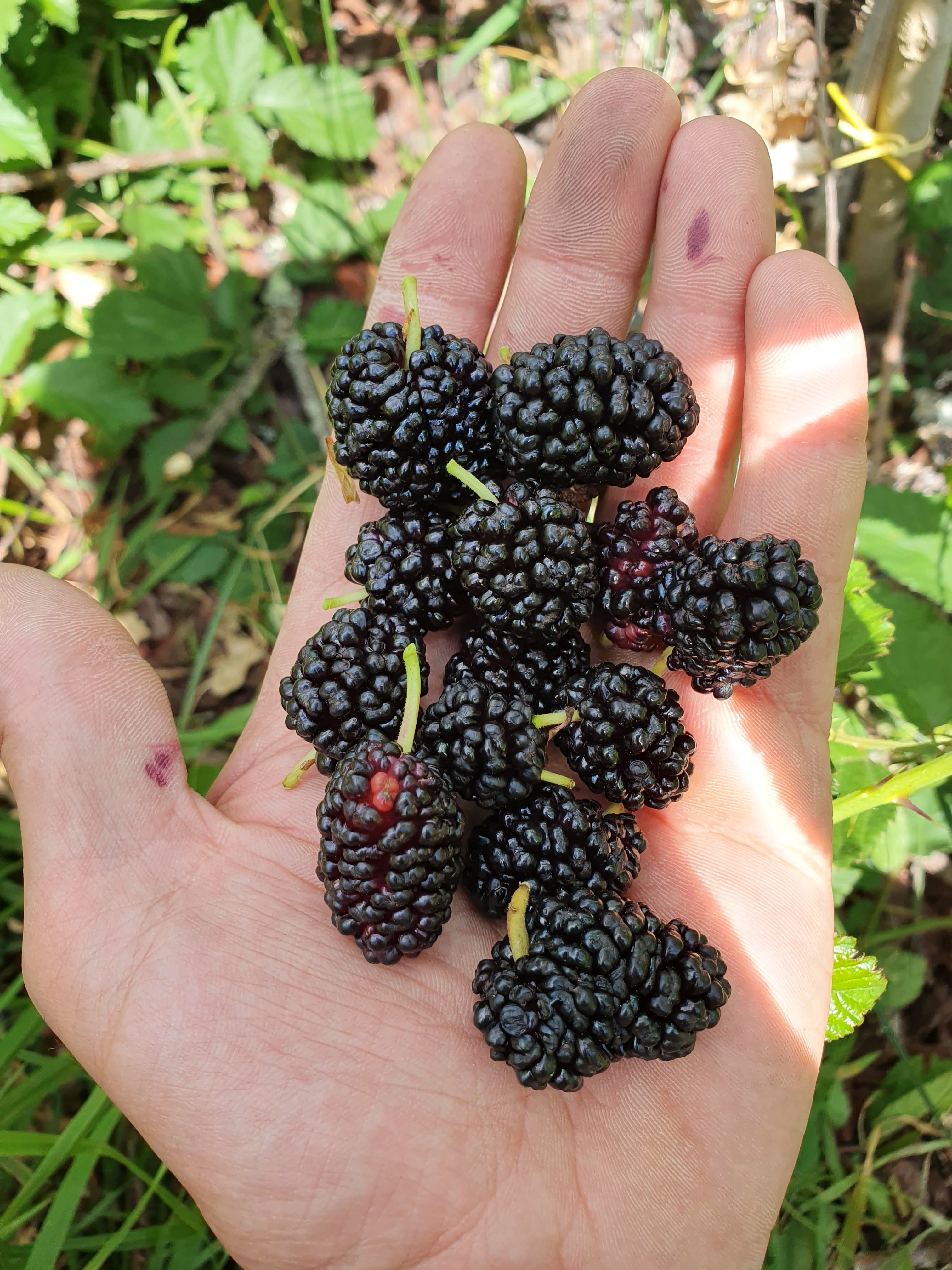 . The gelso nero cultivar mulberries keep on rippening and getting bigger and bigger… really really tasty.