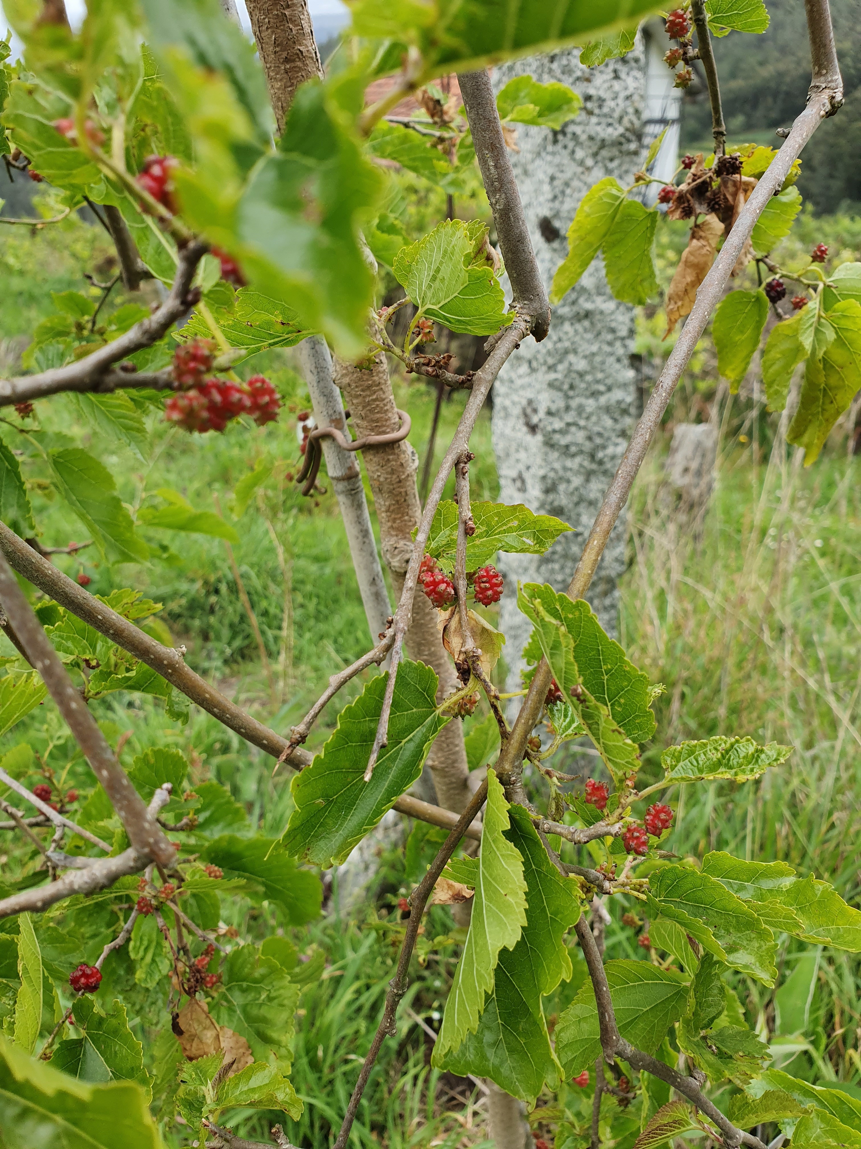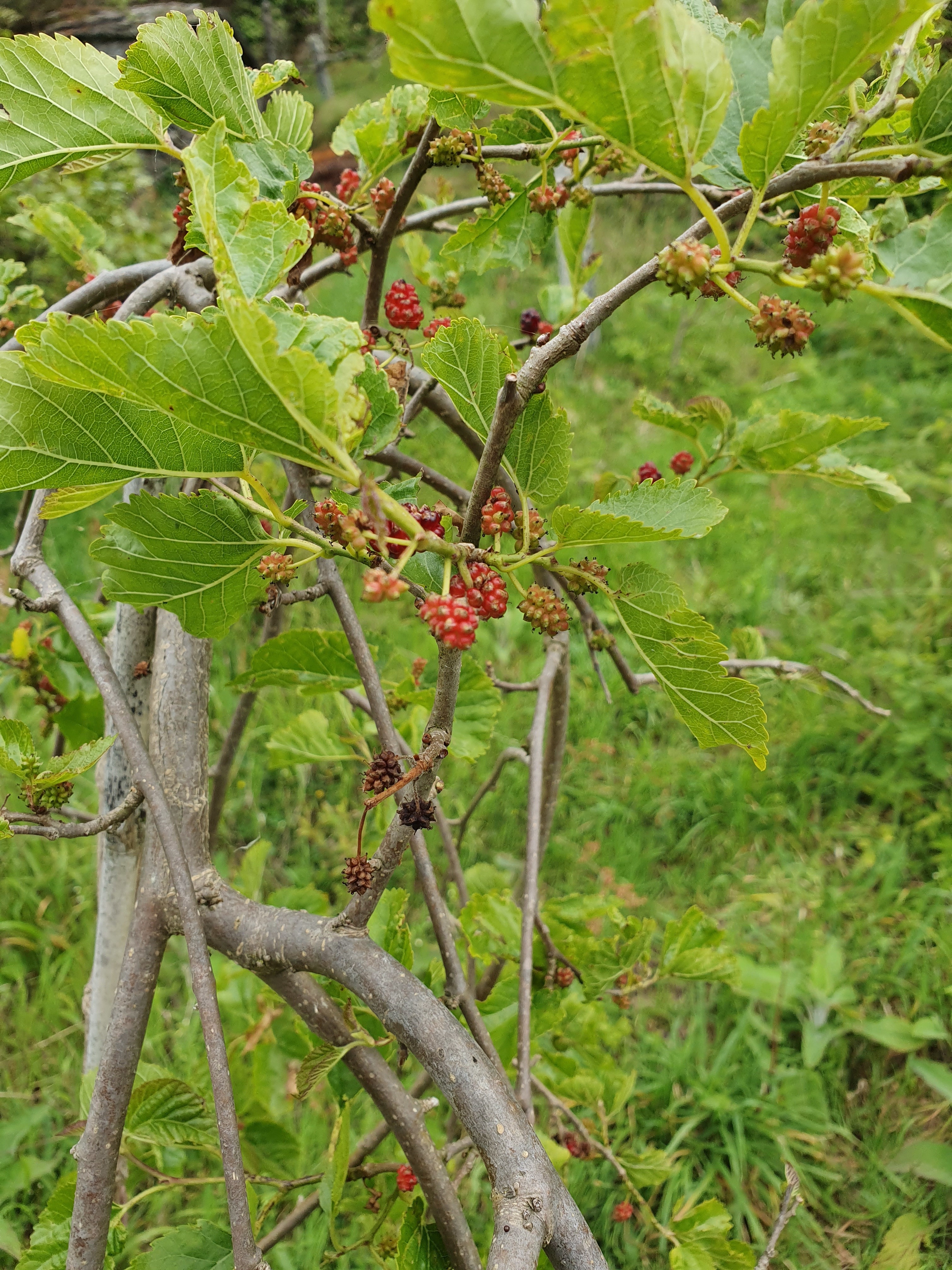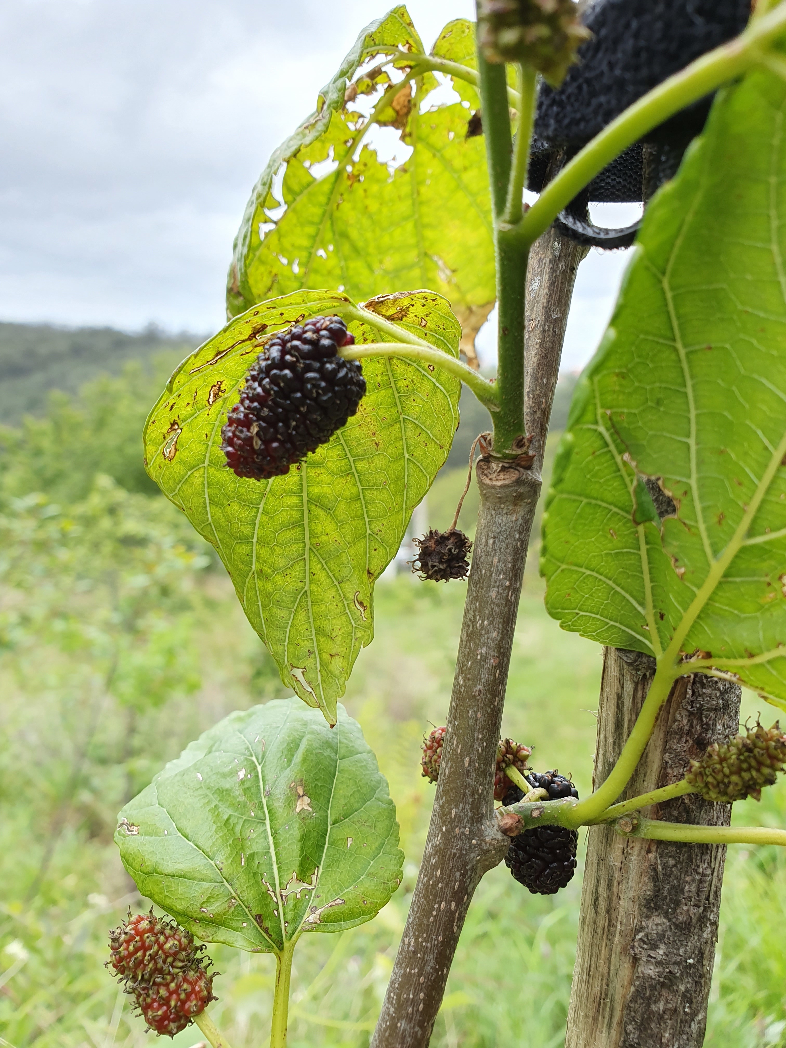 My 2 shangri la mulberries are fruiting just a few weeks after planting, fruits should get larger next season once established