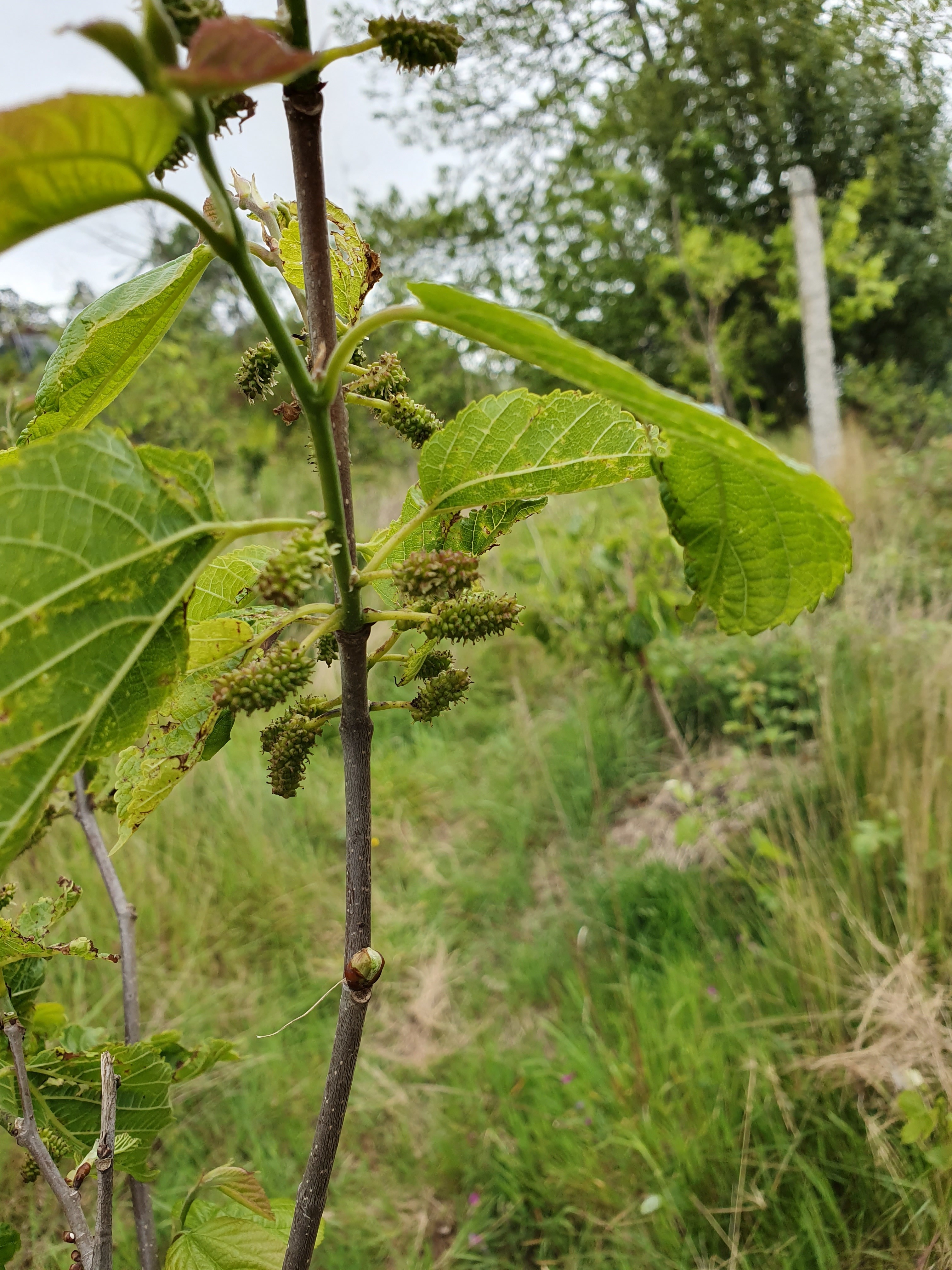 No label, but i believe its a morus alba bombcys, one of those used for ornamental purposes (i have 2 of these, one supposed to be a female one but only producing male flowers…).