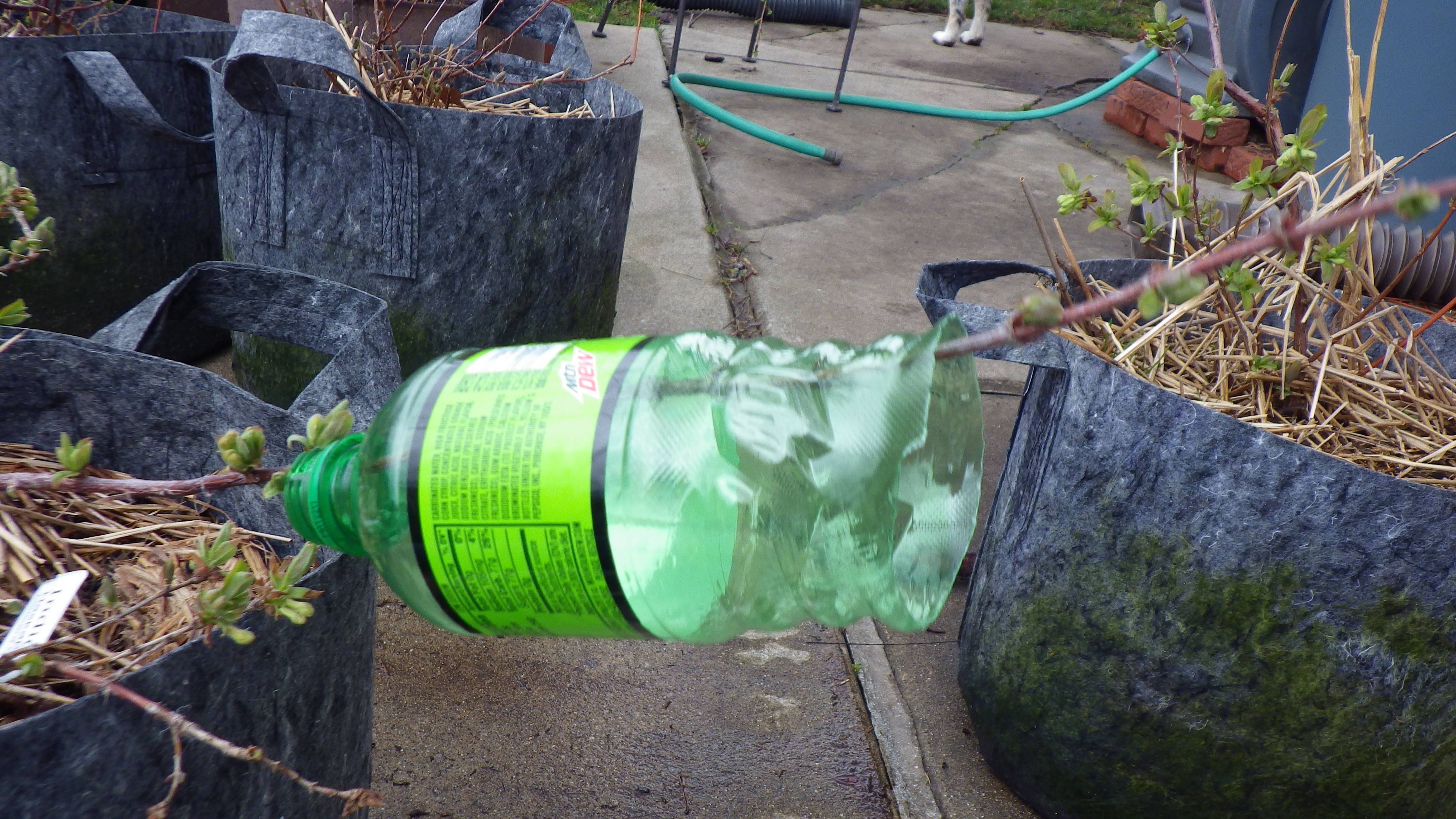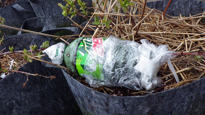 Filled with Black Magic coco coir mix. I wet it, and squeezed out all excess moisture as I filled the bottle. Sealed with plastic wrap and tape.