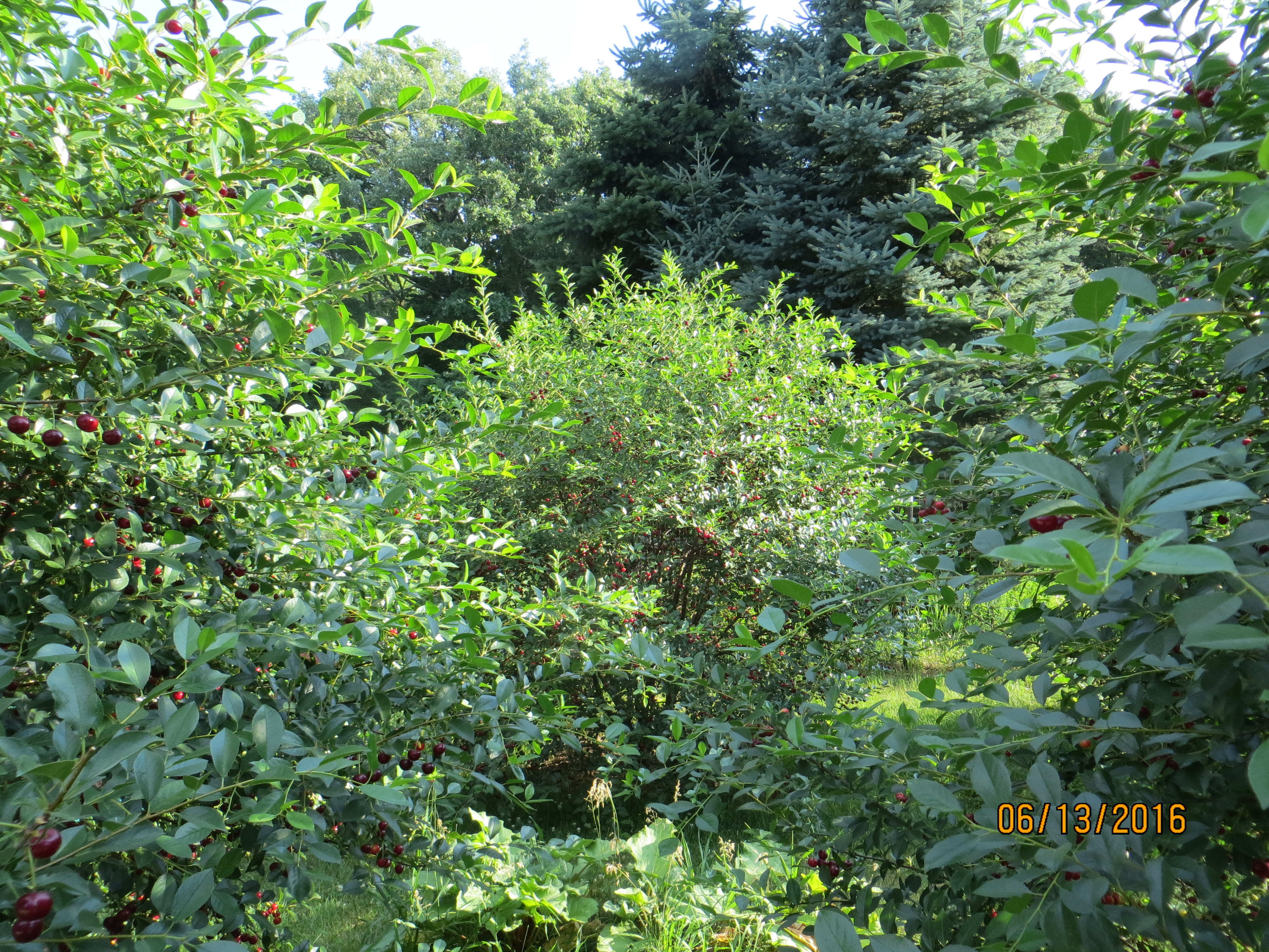 yeah yours got a lot bigger than mine by the 5th year. mine are only half as big. i planted them in mounds of bag soil and fed with chic manure for 4 yrs. from now on Iām just going to keep mulch around them and let them do their thing⦠how soon did you get fruit? i got a few the 4th year and a couple dozen this year. romeo ,is in its 3rd year and hasnāt produced any yet even though it had flowers. also put in a lutowka rose cherry last summer. this summer it put on 2ft. of growth.
