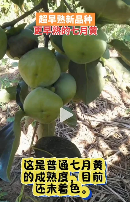 “Qiyue Huang” (literally translated as “July Yellow”) is a popular early-maturing persimmon variety in China. Its name comes from the fact that it ripens around July of the Lunar Calendar (usually late August to September in the Gregorian calendar), much earlier than standard persimmons.