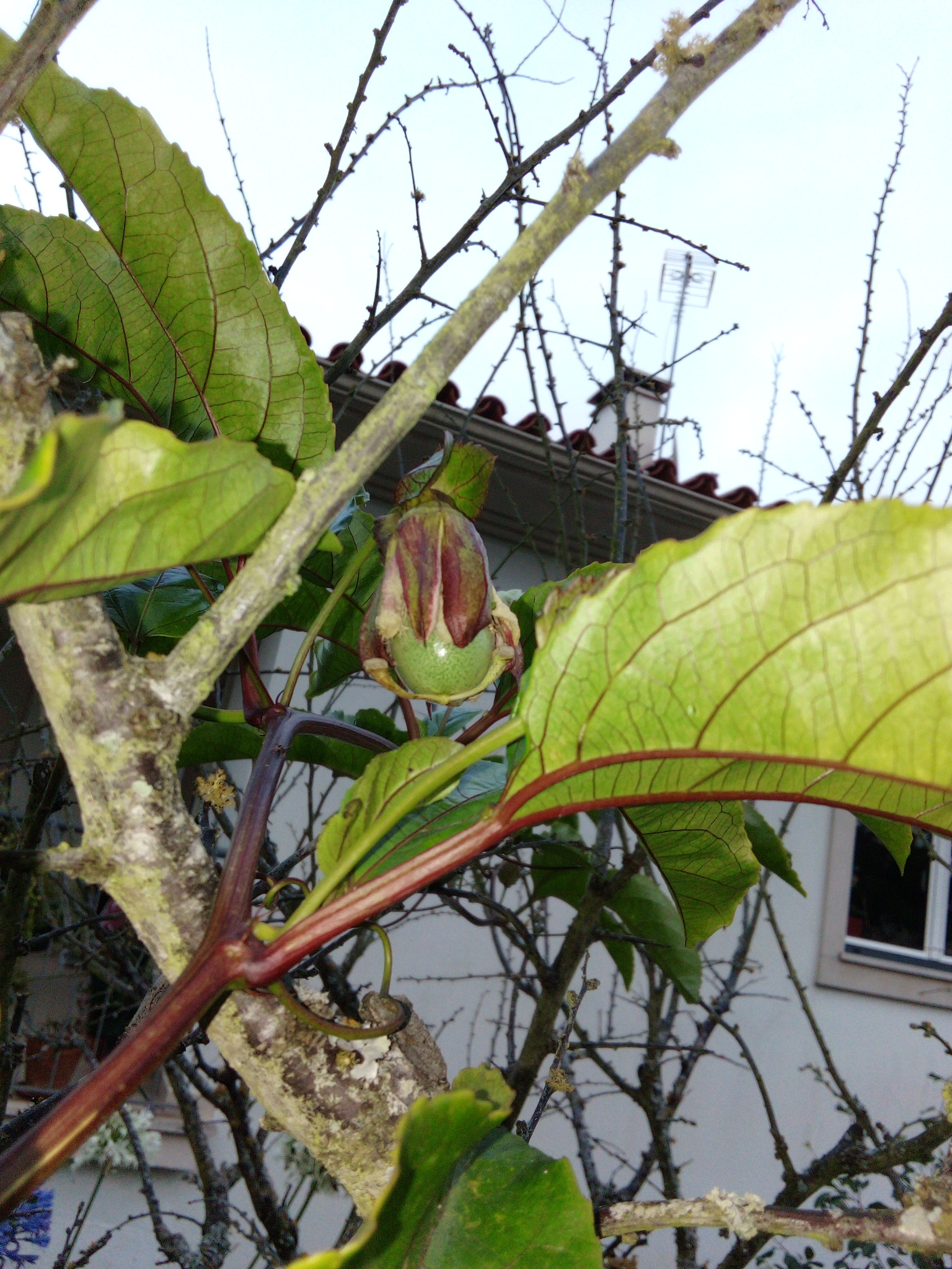 Our first passiflora edulis fruit showing off