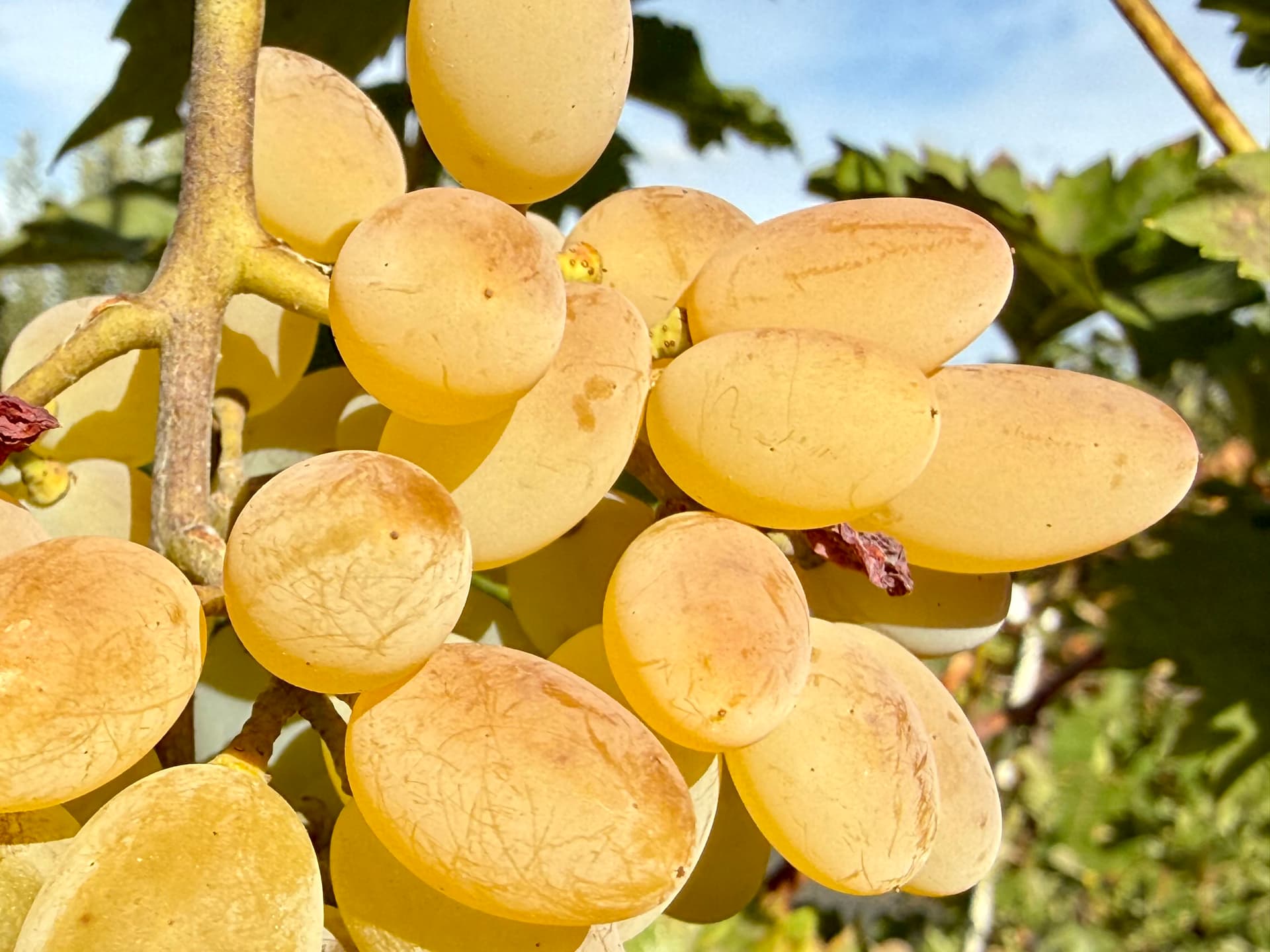 A friend of a friend was tearing down vines to make way for a barn. I rescued the “pinot” vines but 2 yrs in a row now, the white grapes do not look pinot to me. They are moderately loose clustered, seedless, medium oval size, and sweet with a 20+ brix. My other “pinot” vine has small, round berries w high seed content and dusky yellow/gray color.