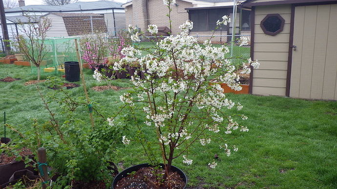 Carmine Jewel escaped the cold, it’s blooming now, my peaches and plums are done. It will fruit for me this year. My plums though will not, and mixed with the peaches. Some look good, others the fruit buds are not viable. All mine too will be fine, just no fruit. That I guess is to be expected from time to time. It makes when you get fruit, the ability to really savor your harvest. They taste that much better!