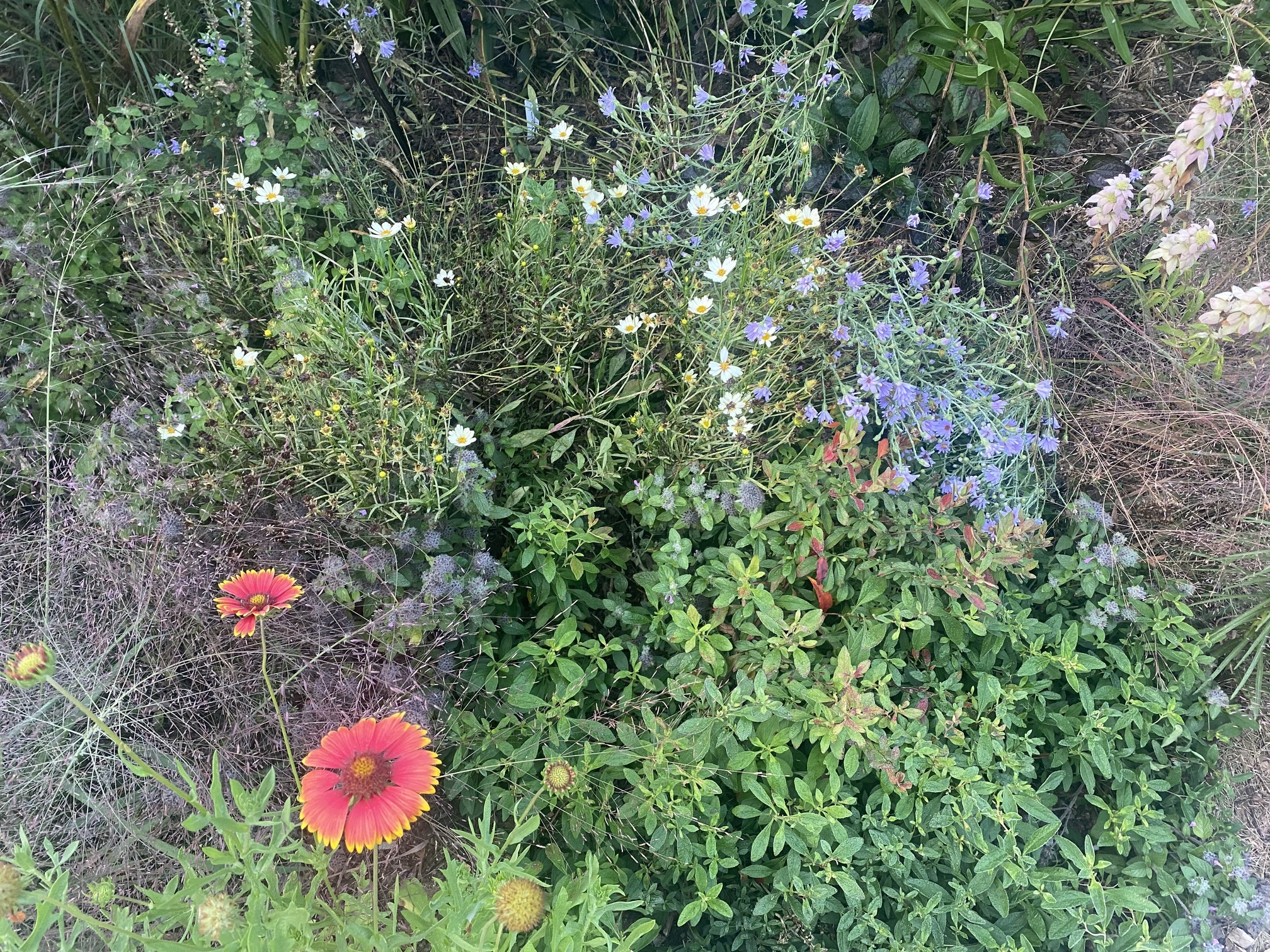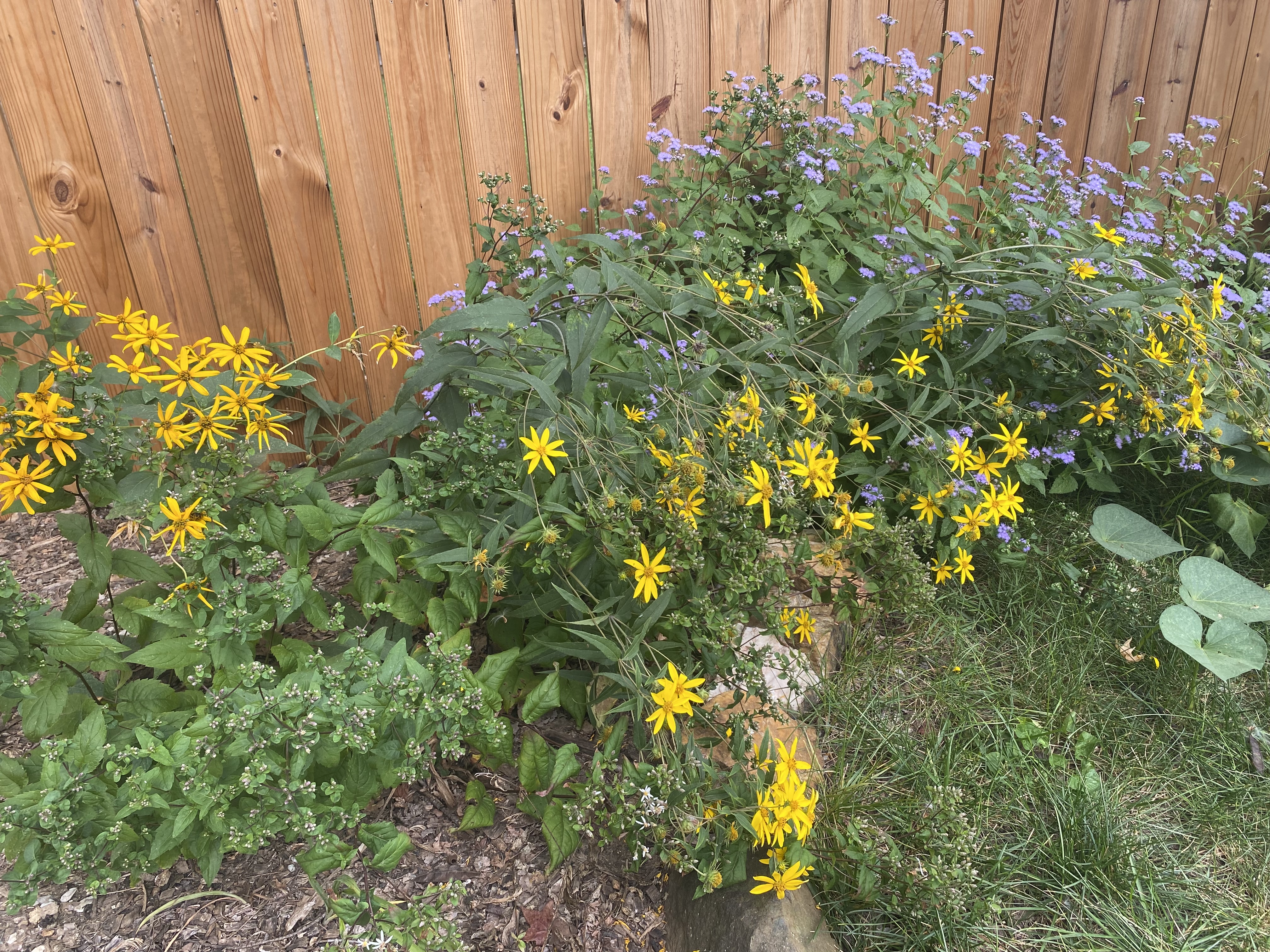 Blue mistflower then that alongside woodland sunflower and some white wood aster getting ready yo bloom.