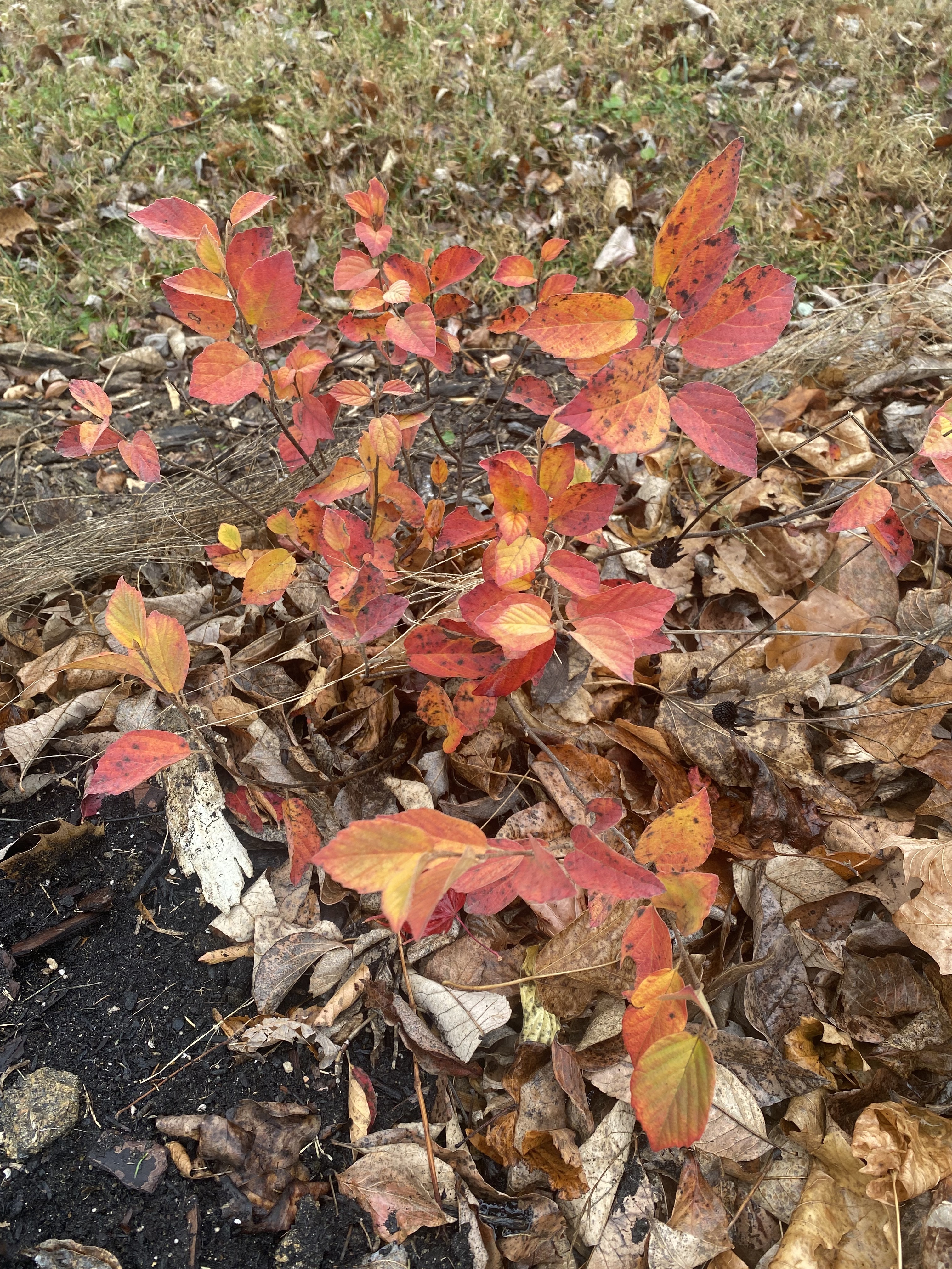 Fothergilla “Legends of the Small” took a long time to change colors, but they’re really eye catching and holding strong. These have neat spring flowers, are slow growing (at least in the part shade everywhere I’ve planted them), small and the deer ignore them. Nothing special in summer, but there’s tons of pretty stuff around them for that job. I’ve planted these at 3 family/friends properties with heavy deer pressure, and they’re all doing well.