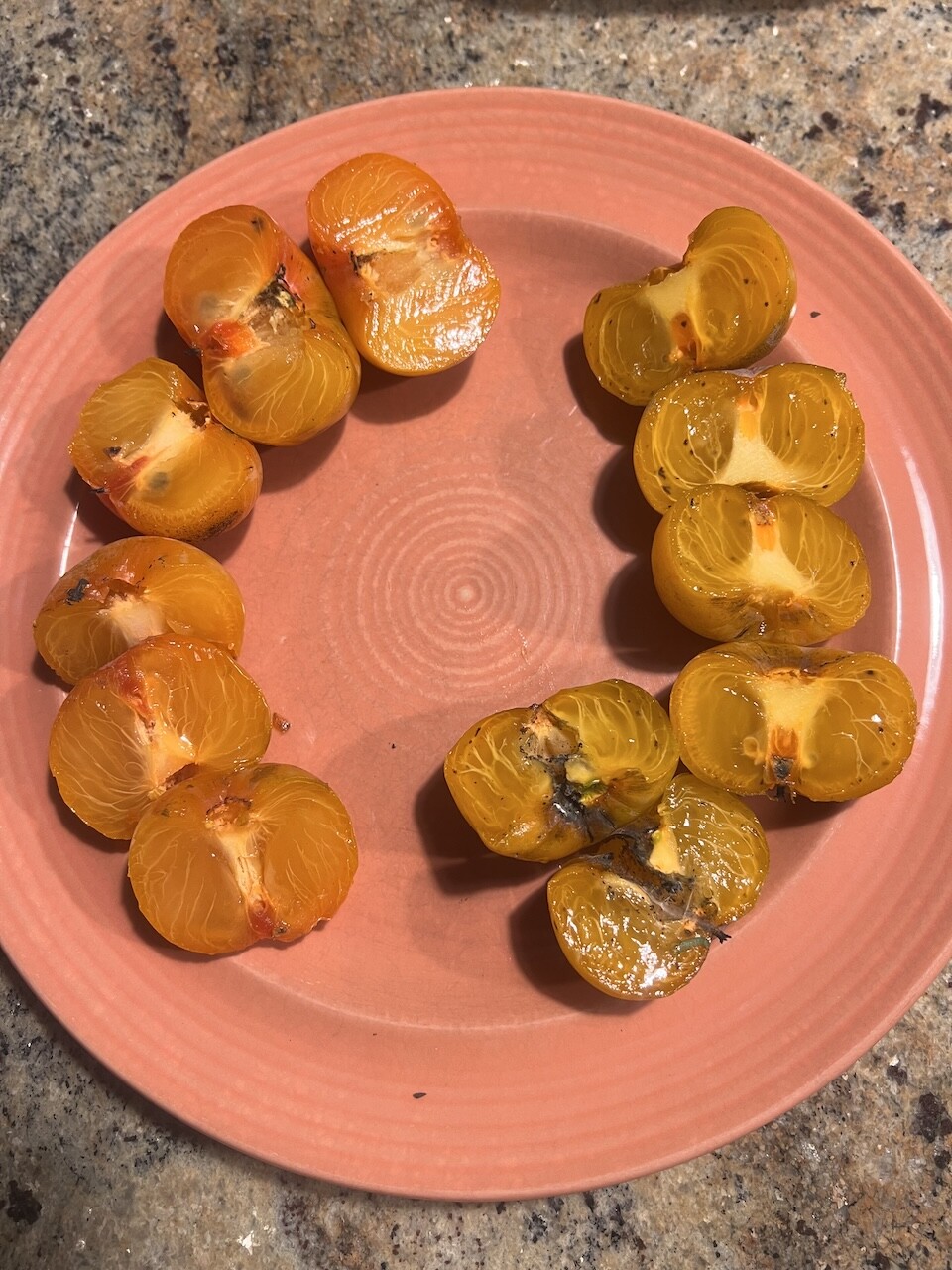 Both varieties taste good. Both were non-astringent except for some residual astringency in / under the skin. But they’re different – Dollywood is slightly milder, BB is stronger maybe richer. But Dollywood seems more consistent – the three fruits taste pretty much the same. BB seems more variable, some better than others.