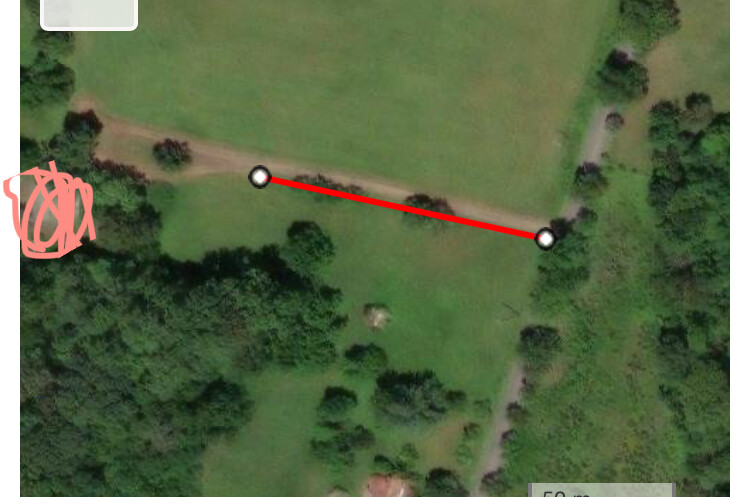 As you can see, it runs approximately east to west. Red line is measuring the stretch I plan to plant, pink scribbles are the home. I haven’t yet decided whether to plant one side or both (which would give me 640’ to play with) Either way, the existing trees along the red line will be removed so shading won’t be a problem.