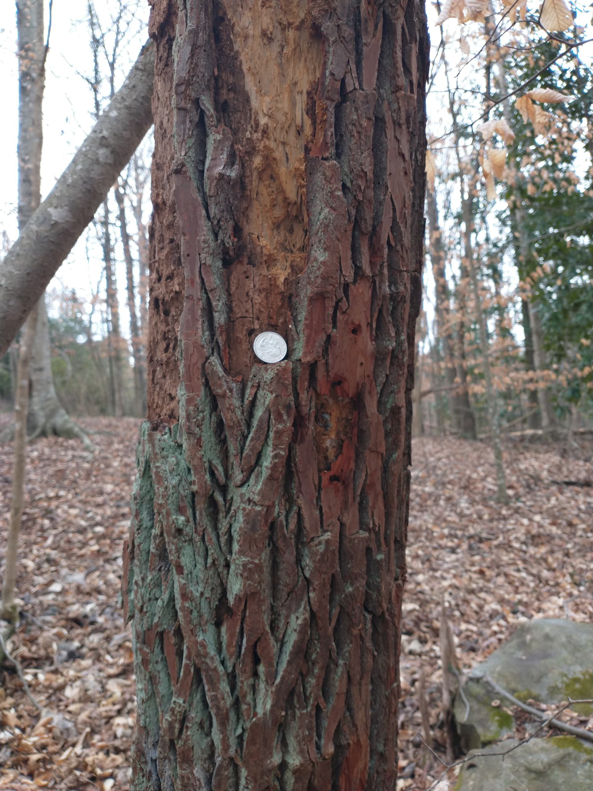 Hereâs a picture of what our eastern hemlock bark looks like in this part of Georgia. This tree is growing about 3300 feet away from my property, at the home of a customer.
