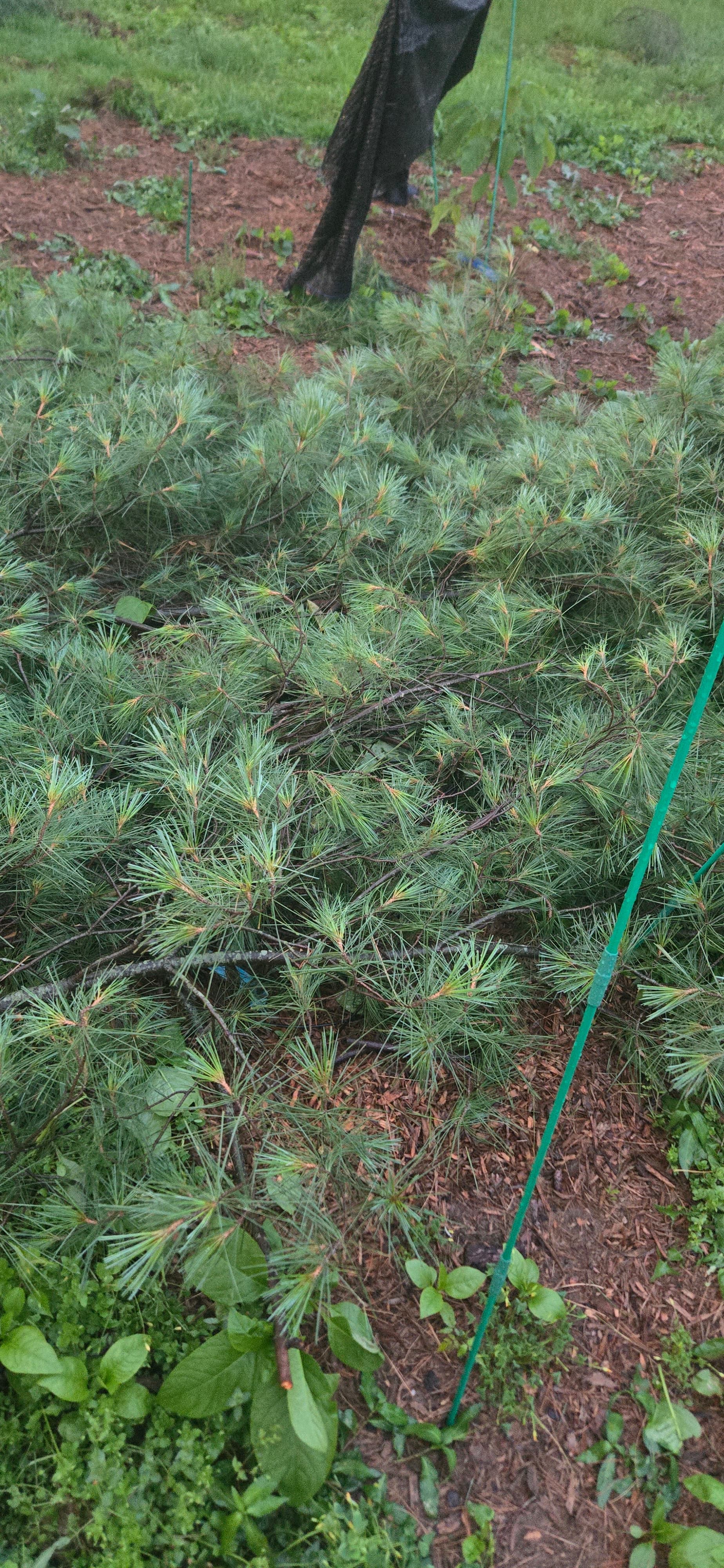 There was a tough storm in my area. I went outside to find a huge pine branch had crushed my pawpaw sapling. I removed it and found the small cage a put around the pawpaw was crushed, but miraculously the pawpaw seems ok! I feel like when most people put cages around their trees it’s for deer pressure but now I’m considering if there are good options to prevent this! Tomorrow I plan to fully assess the damage and maybe apply a splint or something