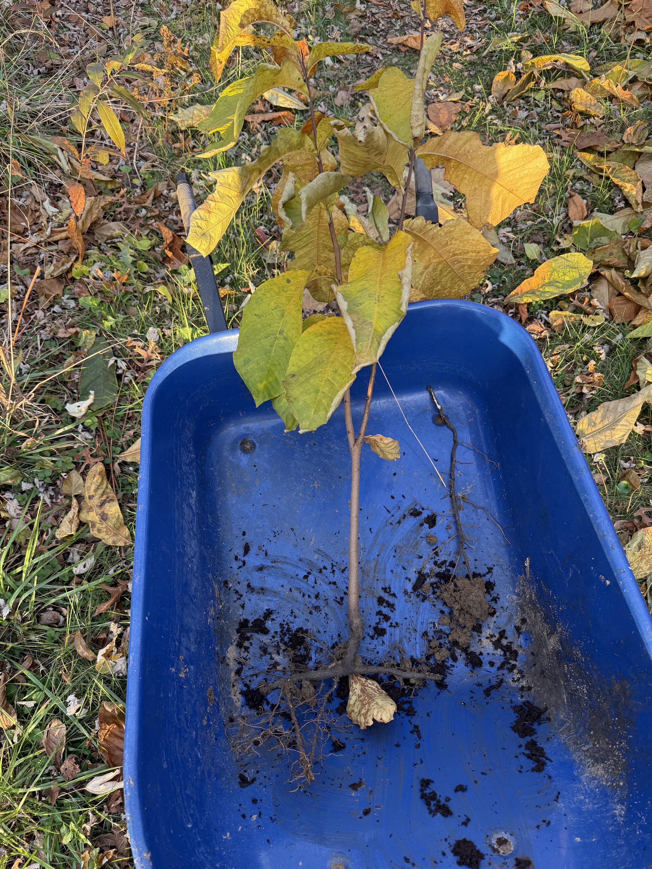 Nice weather today, transplanting a sucker that popped up summer 24, and severed this spring.