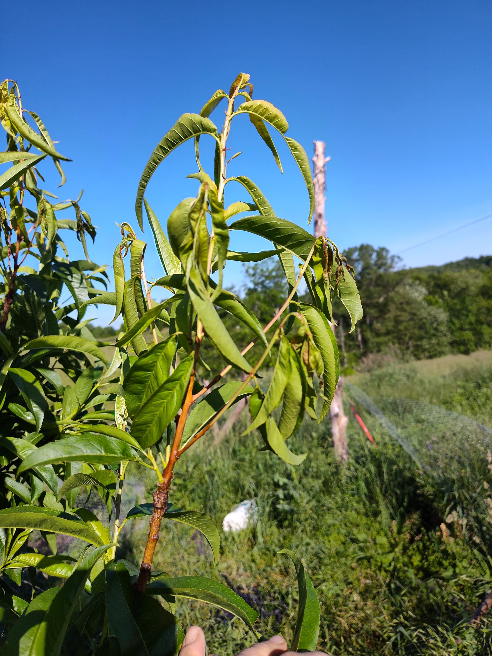 A few photos, only three branches were affected, I’ve removed them 6-12" below any damage. In North central KY, third leaf in ground, haven’t sprayed anything. I don’t plan on spraying either, if we can’t grow peaches here then I won’t bother. Been cooler and wetter than most years here. Any info is appreciated. Thank you.