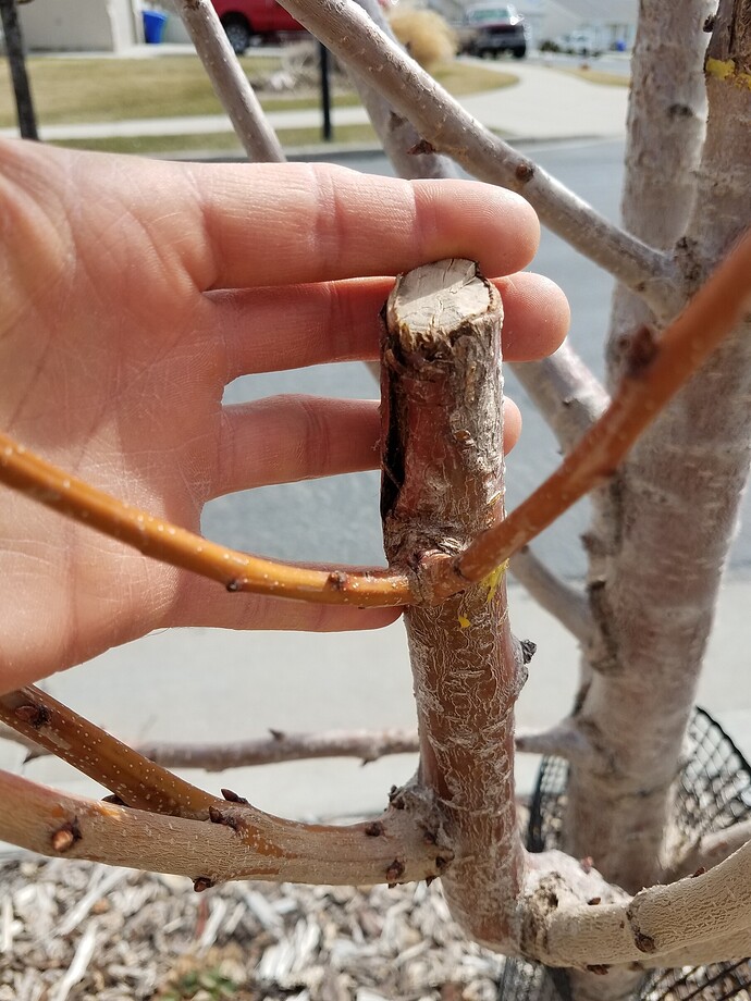 Been wondering about this… here’s a pic (the first one) of a failed graft on my cherry tree last year. I made the mistake that we are talking about here. But noticed how the other 2 shoots below it are so close to it. They shot out just last year. Now contrast that with the other picture of my peach. Notice how far the cut is from my IF graft from a couple years ago. This gives me at least some hope that cutting close to the IF may in fact work after all, so it’s at least worth a shot. Then again, perhaps there’s a real significant difference between cherries and peaches where what I’m planning isn’t going to work.