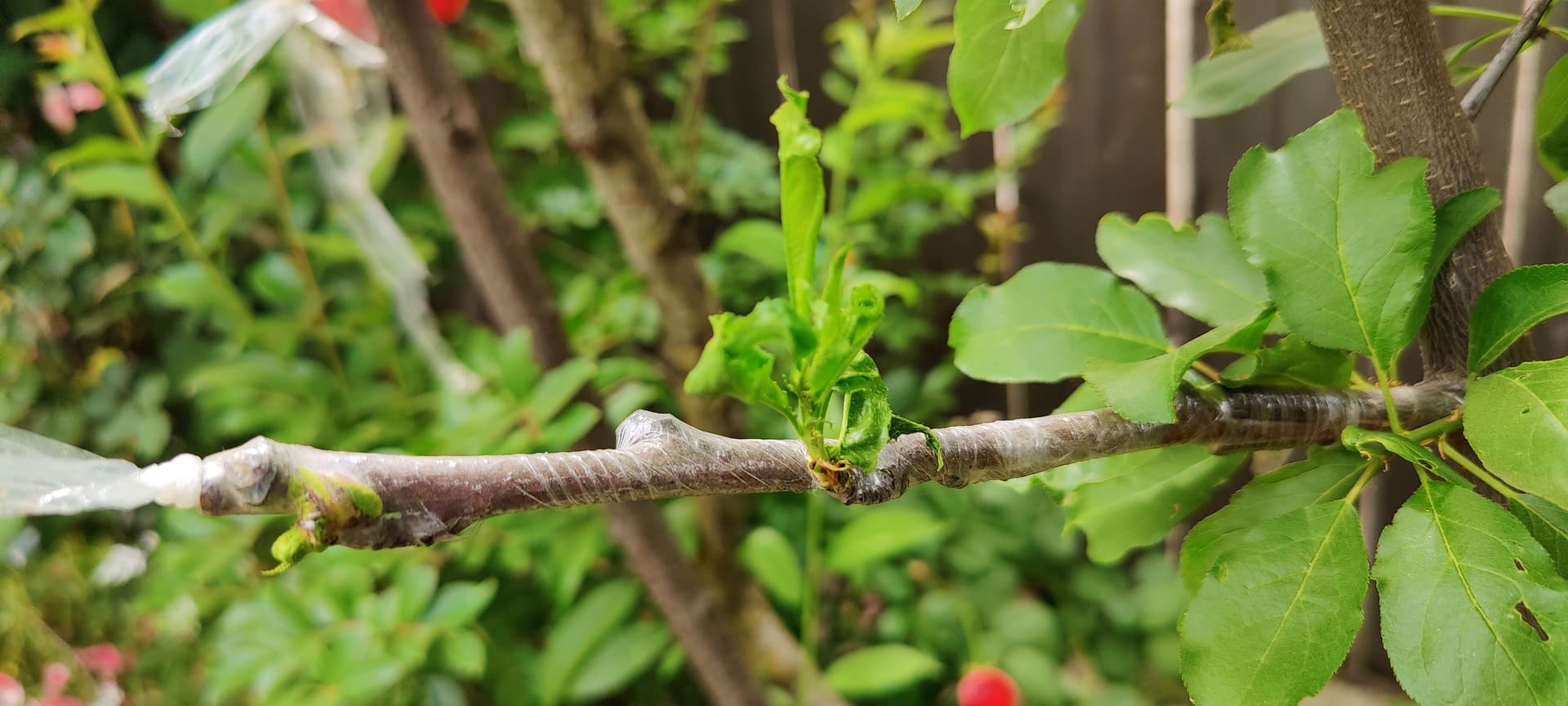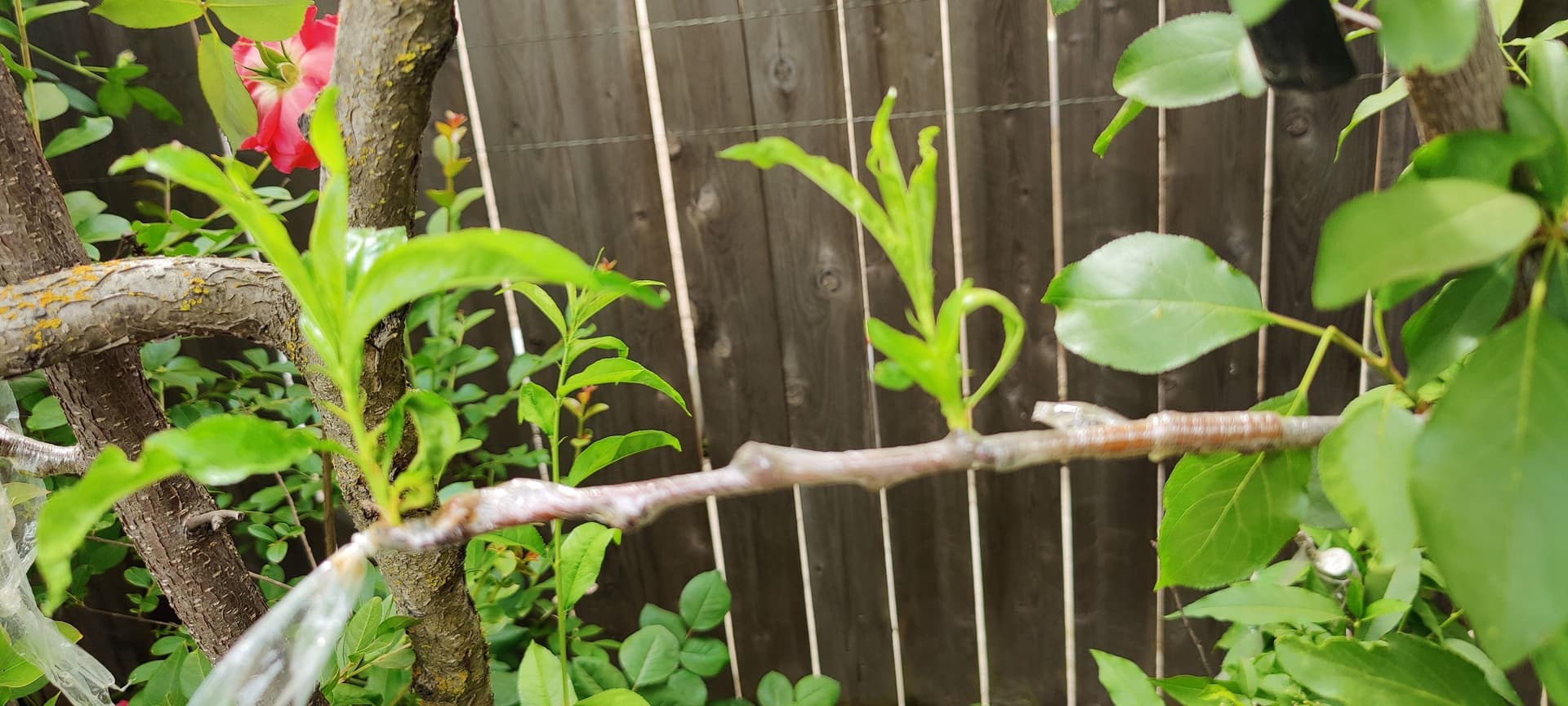 Around a week ago, I did graft a few apricot scion onto the plum. I got the scion from a cousin and the apricot have already leafed out. So, there is no bud. I don’t like the apricot scions because they are not straight. If they works, then I can have plum, nectarine, and apricot onto one tree.