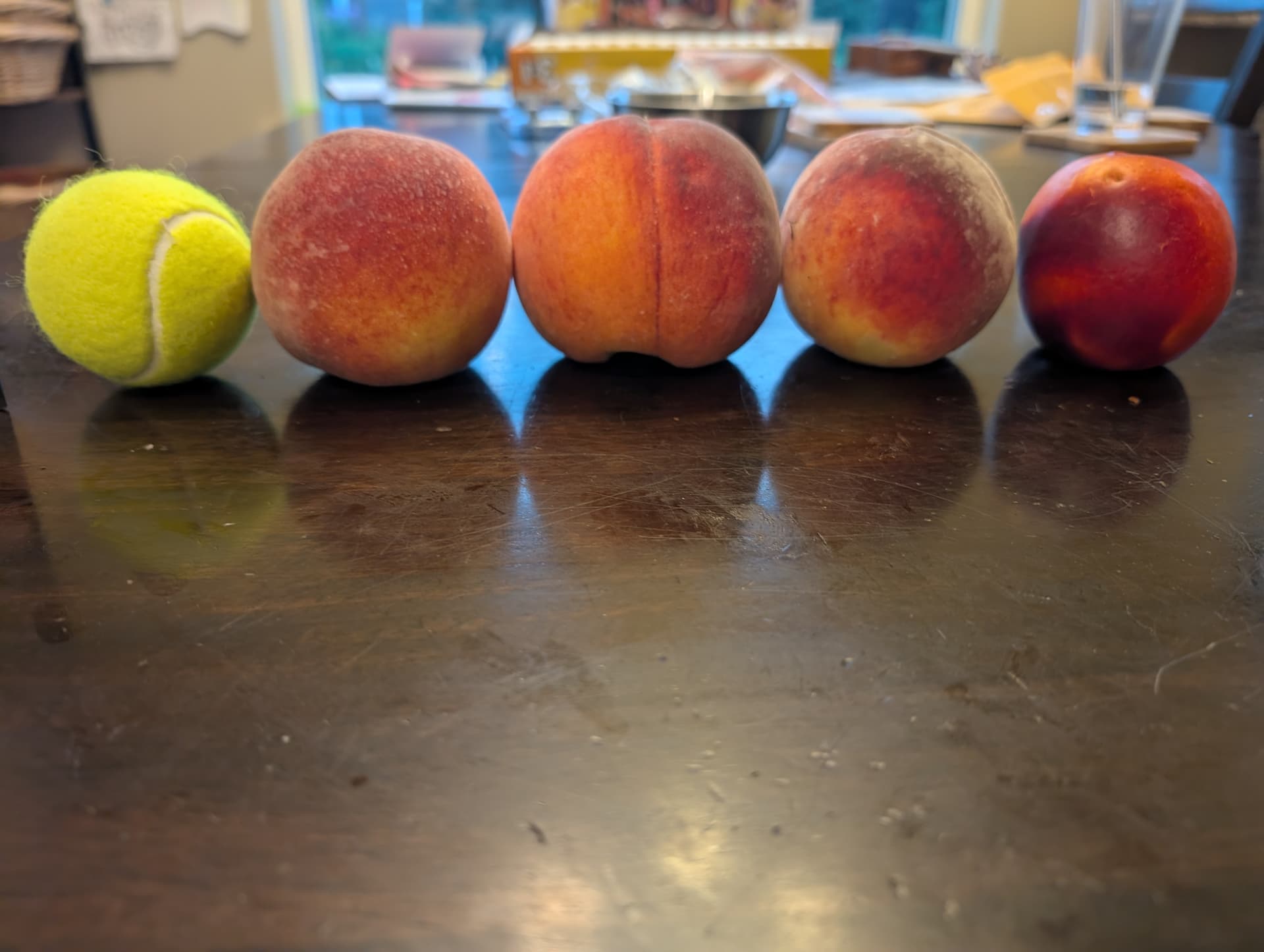 Contender Peaches ripening up here in 5B. Took them off the tree probably a little too soon but these ones were massive and I didn’t want to chance bugs getting to them. First Peaches ever for me! Still have 20-30 on the tree that aren’t quite this big and could use a few more days. These big ones are about 3 3/4" diameter!